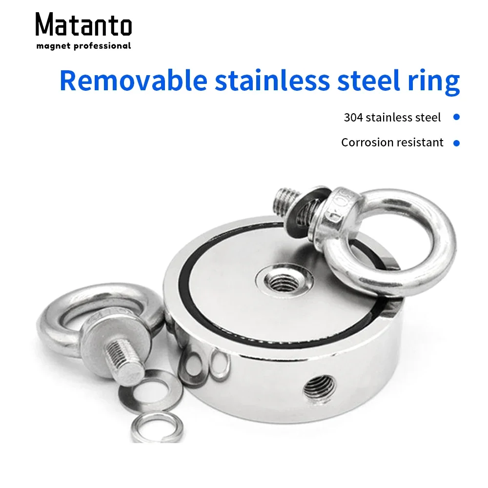 This is a very good magnet it is double-sided but it comes with two eyebolt holes and you can use it vertically or horizontally.