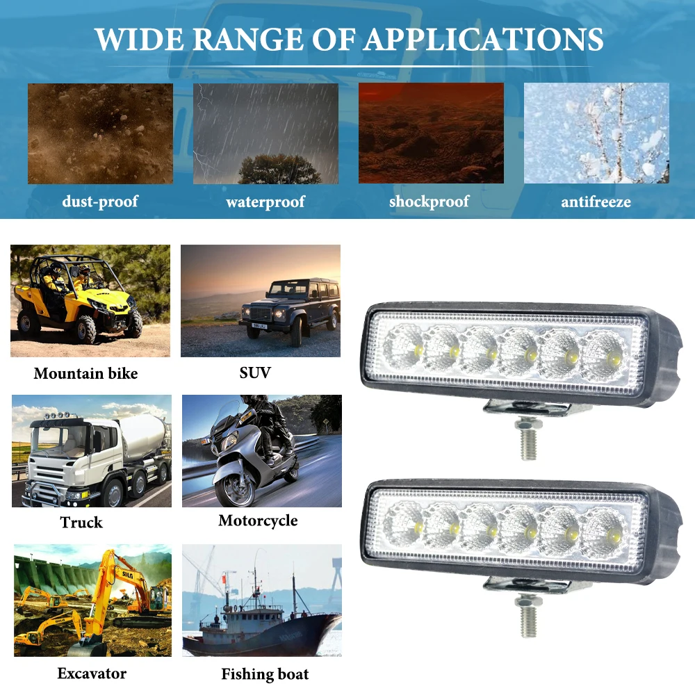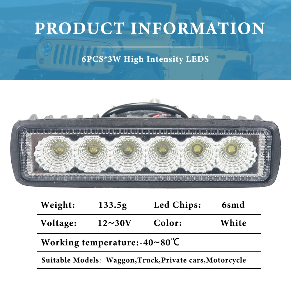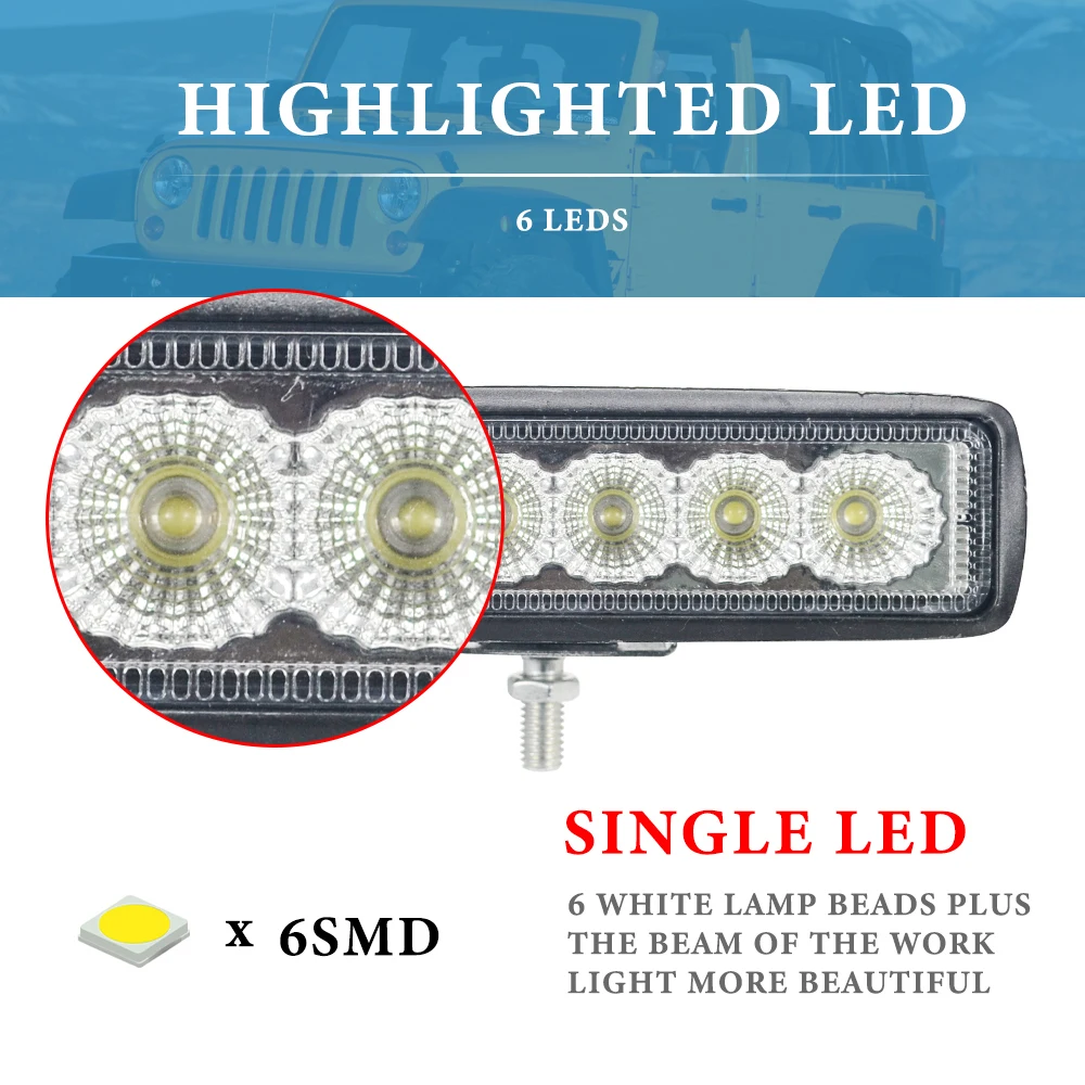 1/2Pcs LED Bar Motorcycle Fog Lamp Work Light Floodlight Working Lamp 6SMD Universal For ATV Truck Tractor 4×4 Accessories Off Road SUV 12V 24V