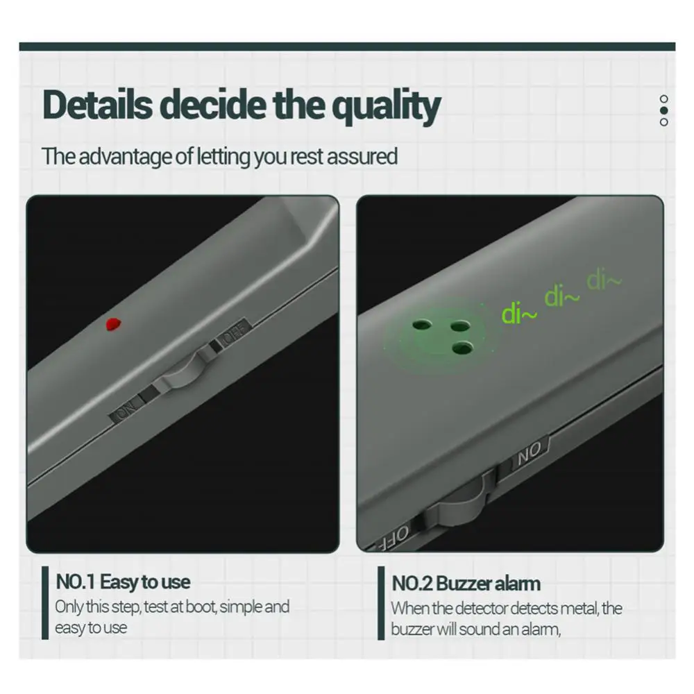 2. Buzzer alarm: when the detector detects metal, the buzzer will sound an alarm.