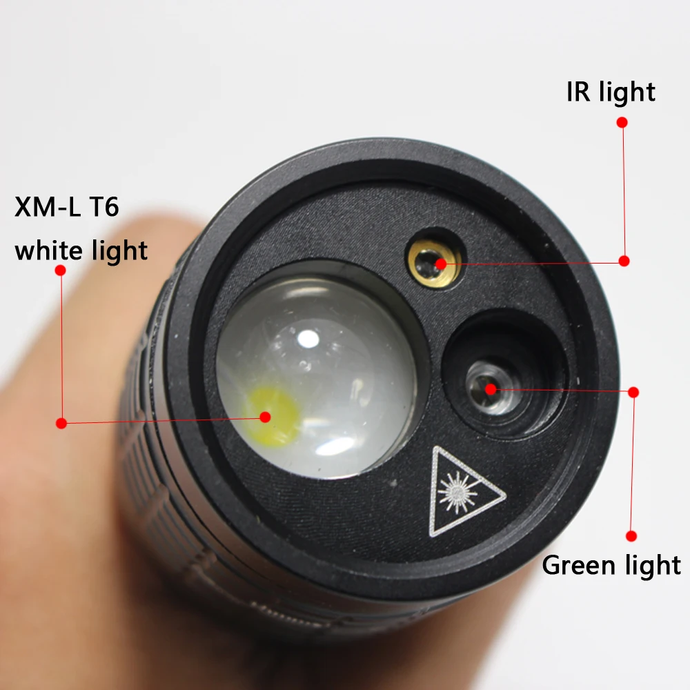 1000 lumens Red/green light flashlights IR Multifunction led Laser Flashlight XM-L T6 focusing zoom Tactical Hunting flash light