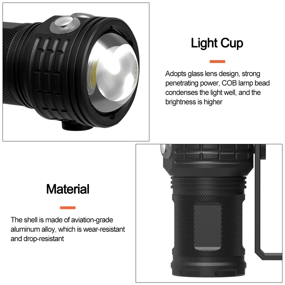 Name: Multi-functional 3-color diving flashlight 80m underwater photography LED light IPX8 COB flashlight