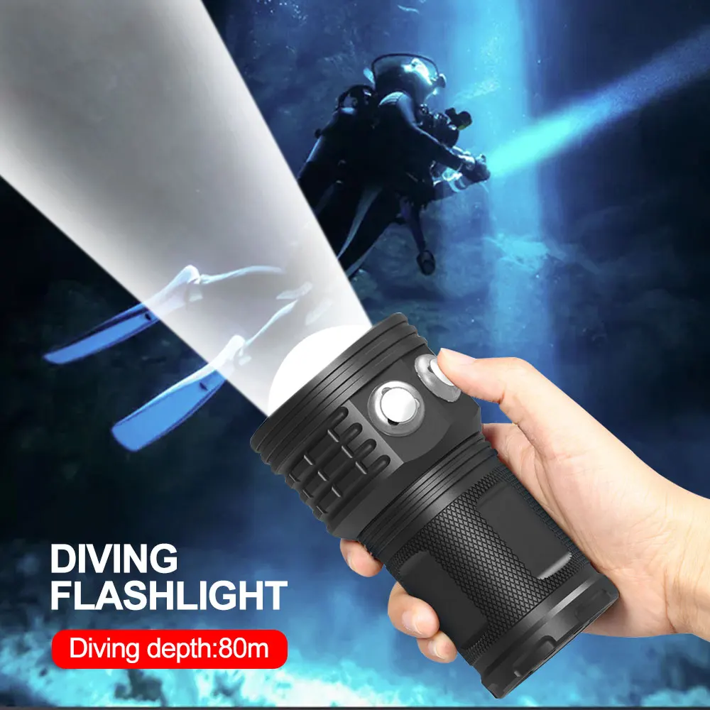 10000 Lumens LED Diving Flashlight Underwater lantern Lighting 100m Waterproof Tactical Torch For Photography Video Fill Lights 수중랜턴 다이빙 랜턴 كشاف фонарик linternas led de alta potencia el feneri