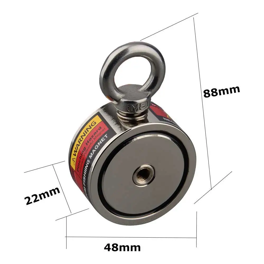 120KG Two Sided Recovery Searching Strong N52 Neodymium Magnet Fishing Magnets Imanes with 15m Rope Gloves