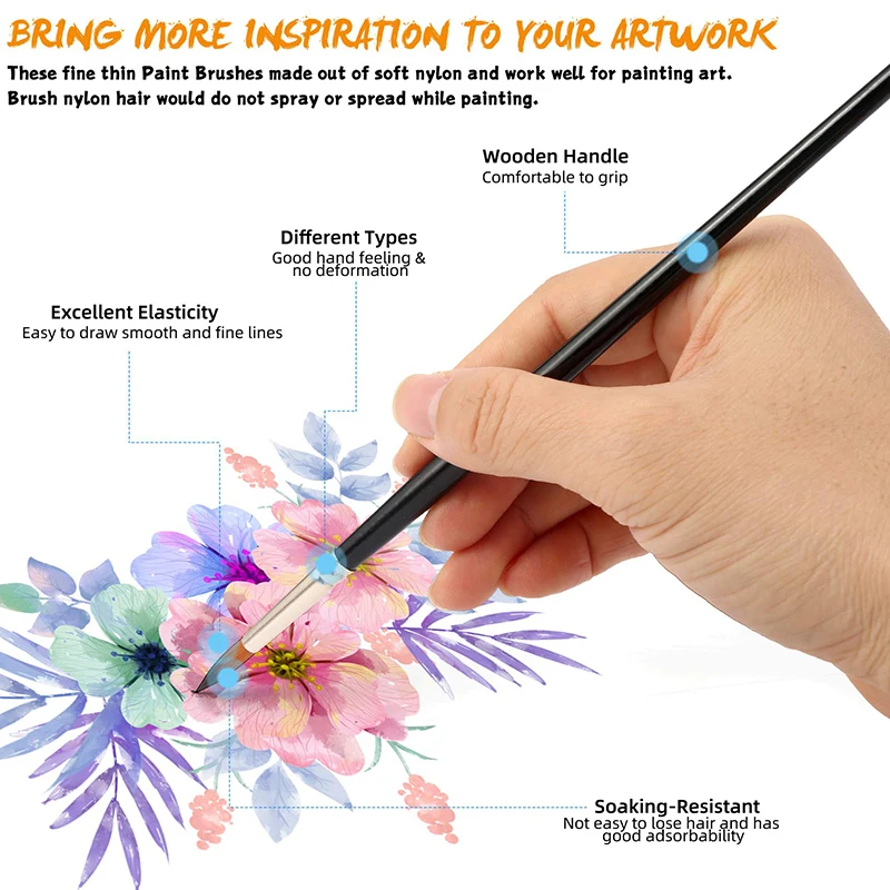 12pcs Paint Brushes Set Professional Paint Brush Round Pointed Tip Nylon Hair Acrylic Brush for Acrylic Watercolor Oil Painting