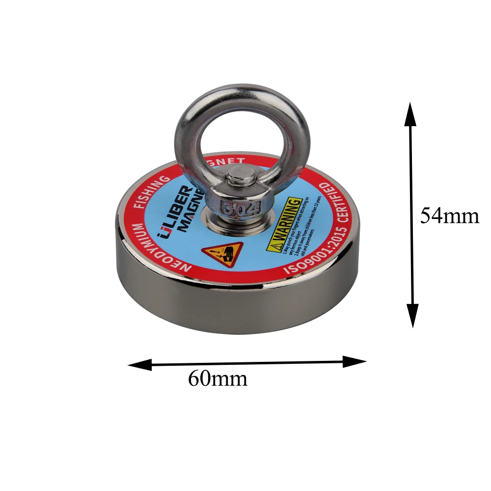 150KG Vertical  Strong Neodymium Magnet Search Magnets D60mm Super Power Salvage Fishing Magnet with Searching 10M Rope