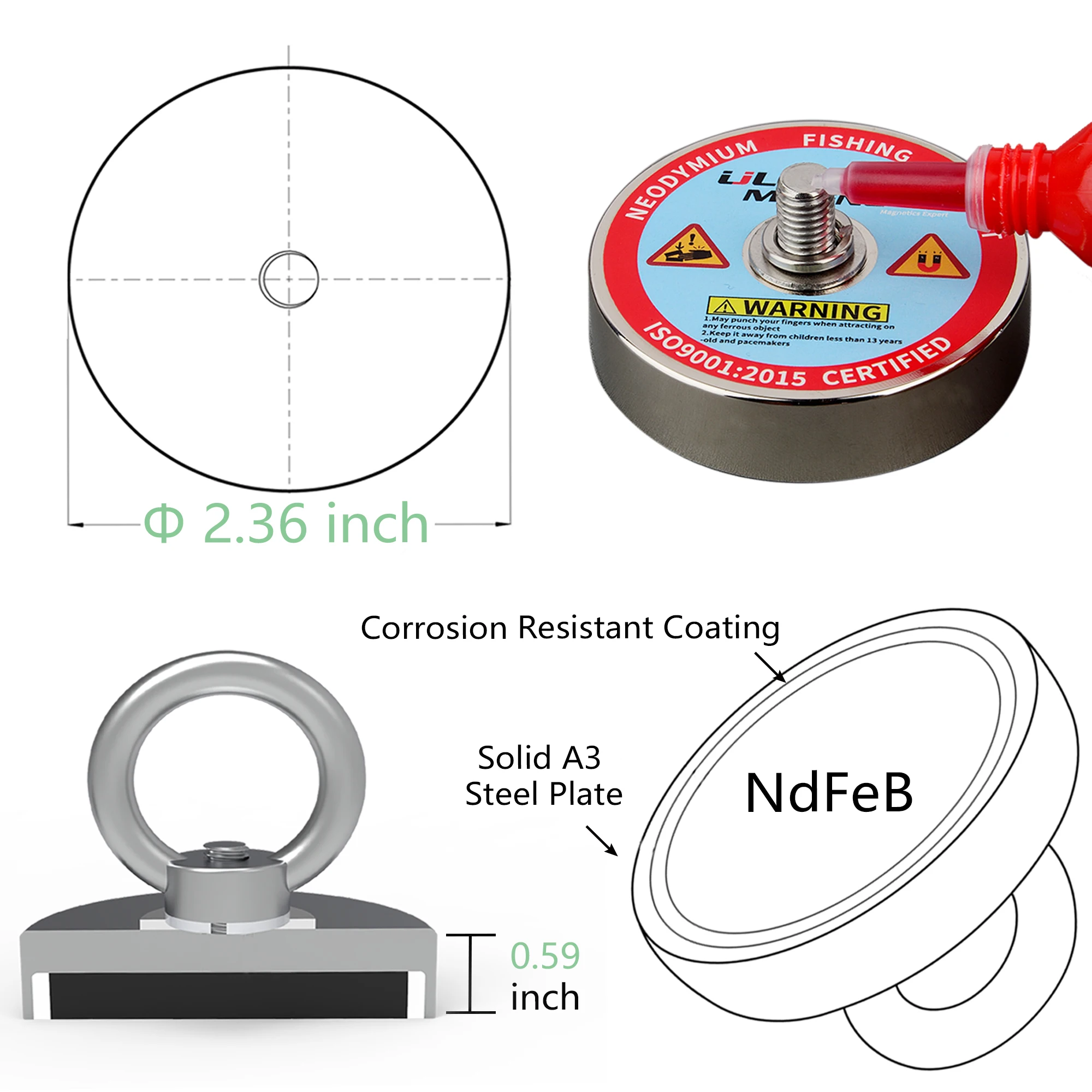 150KG Vertical Strong Neodymium Magnet Search Magnets D60mm Super Power Salvage Fishing Magnet with Searching 10M Rope
