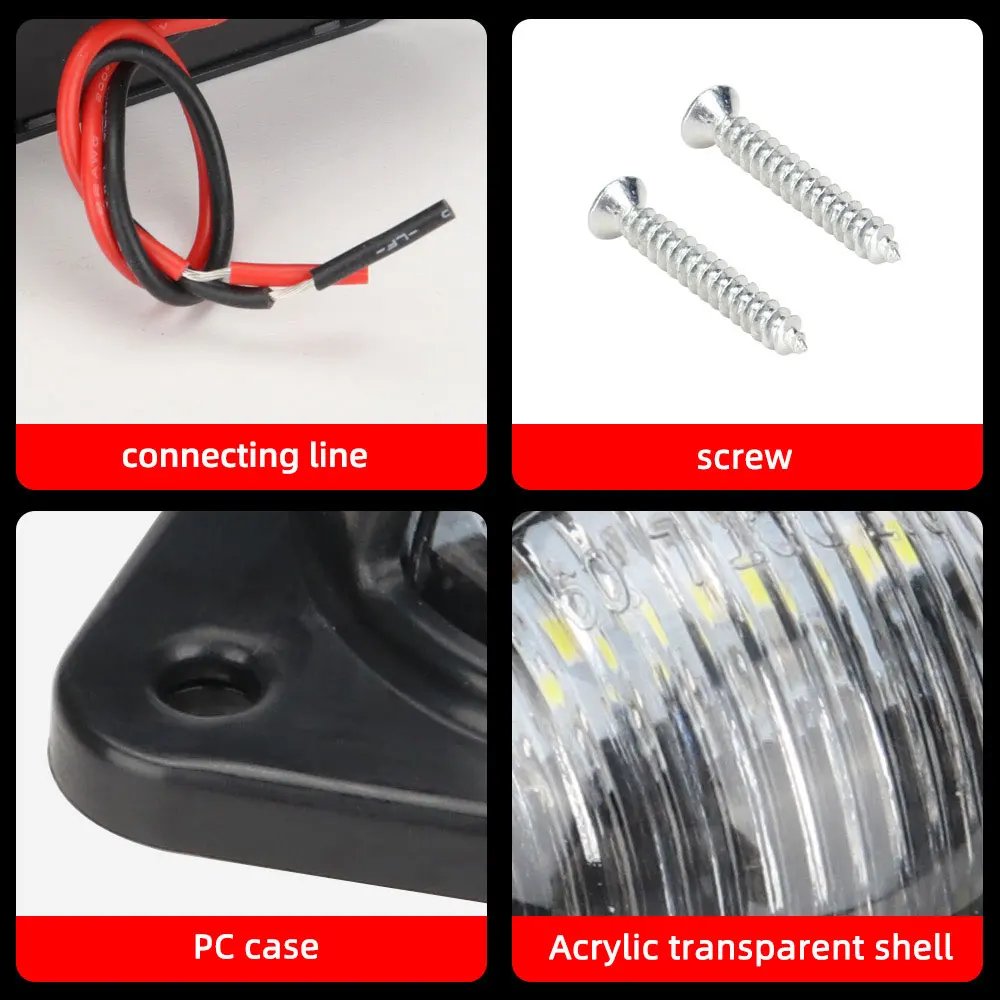 1Pc Car LED License Number Plate Light 12V 24V Truck Side Lights White Super Bright Lamp For SUV Trailer Motorcycle Accessories
