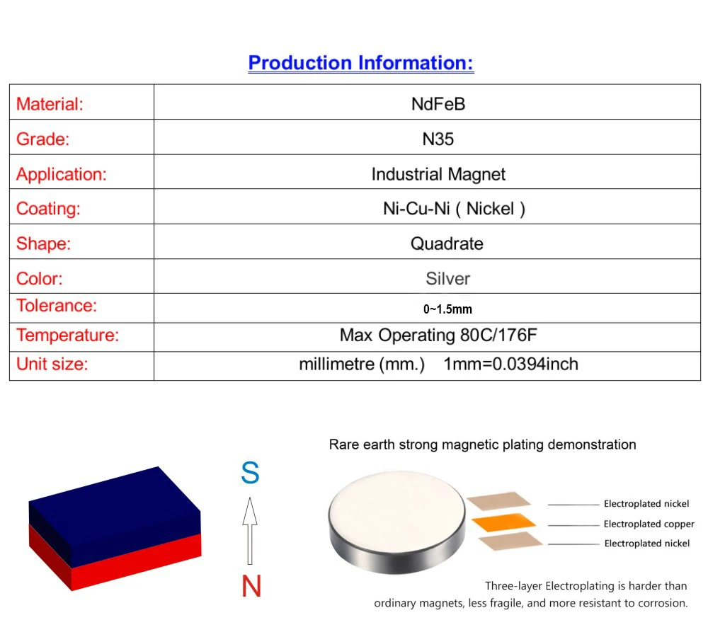5. Neodymium magnets are usually coated Nickel-Copper-Nickel plating to prevent the iron from rusting. If not used in time, be sure to keep away from the high temperature and corrosive environment,although there is a coating on the surface of the magnet.
