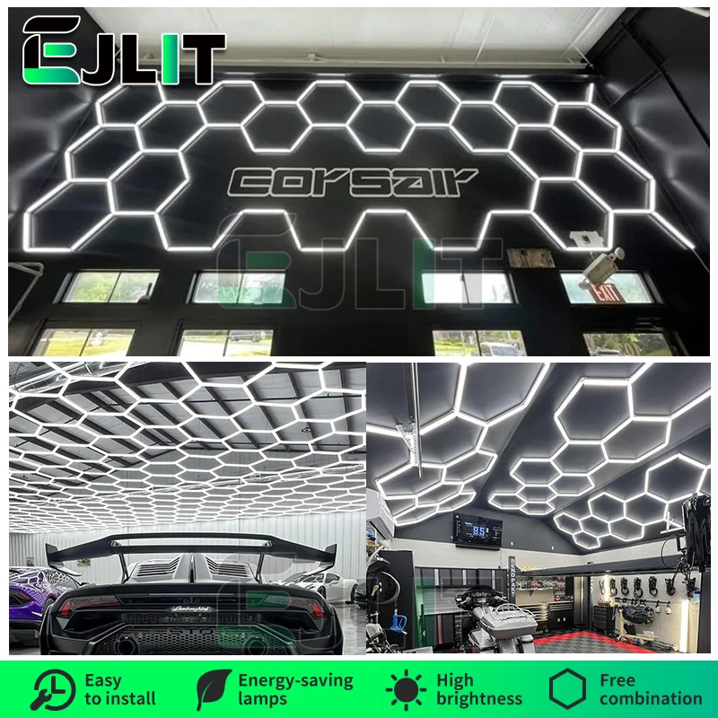 2-Year Warranty Honeycomb LED Car Detailing Ceiling Light Customized DIY Kit Hexagon Light for Car Showroom 4S Workshop Dropship