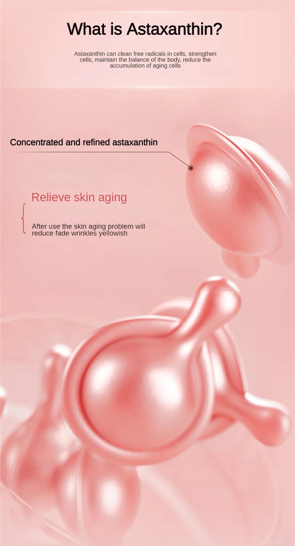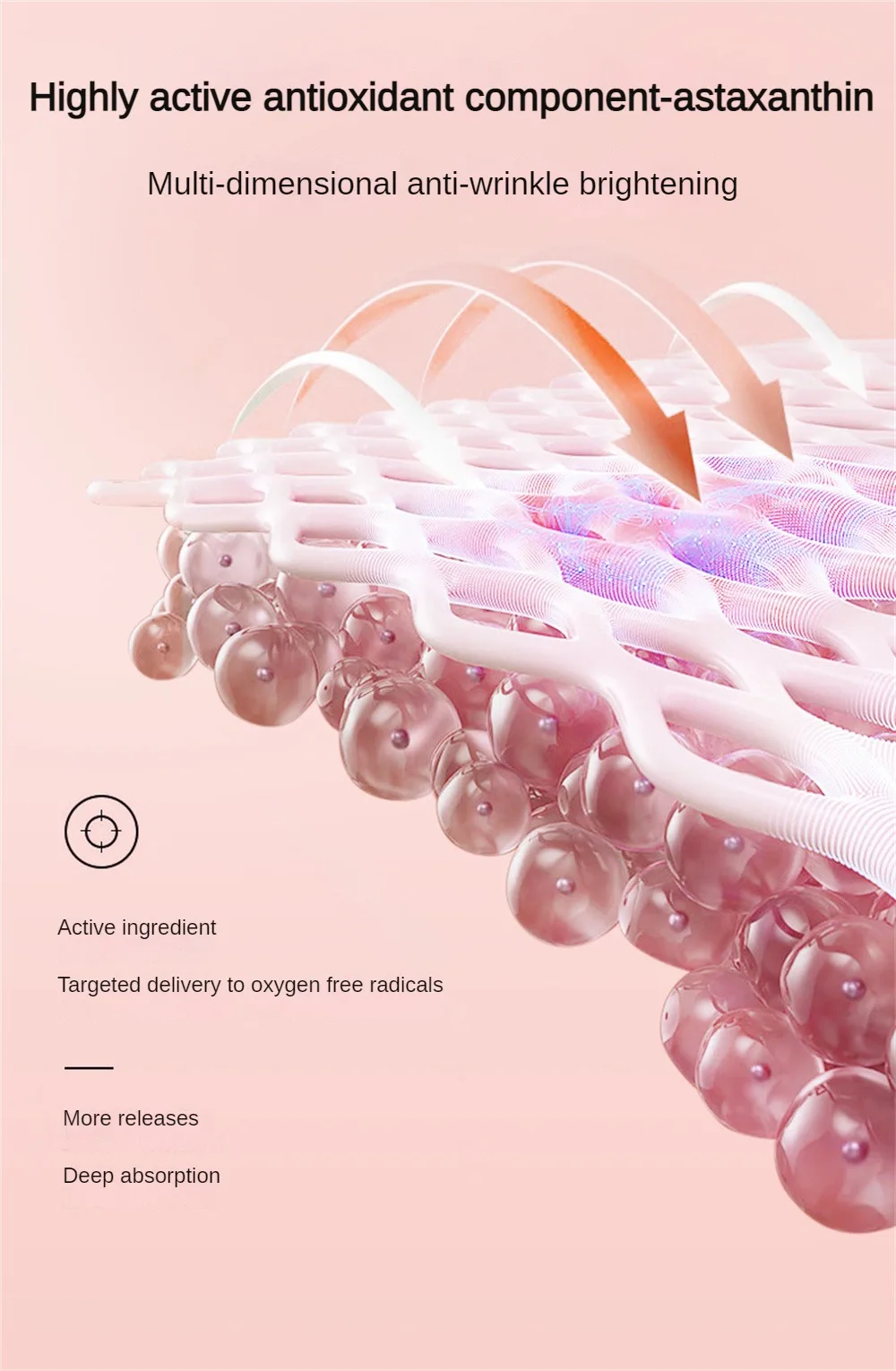 1. 【Anti-oxygen component】: high active anti-oxygen component-astaxanthin, multi-dimensional anti-wrinkle glow, active component, targeted delivery to oxygen free radicals, more release, deep absorption