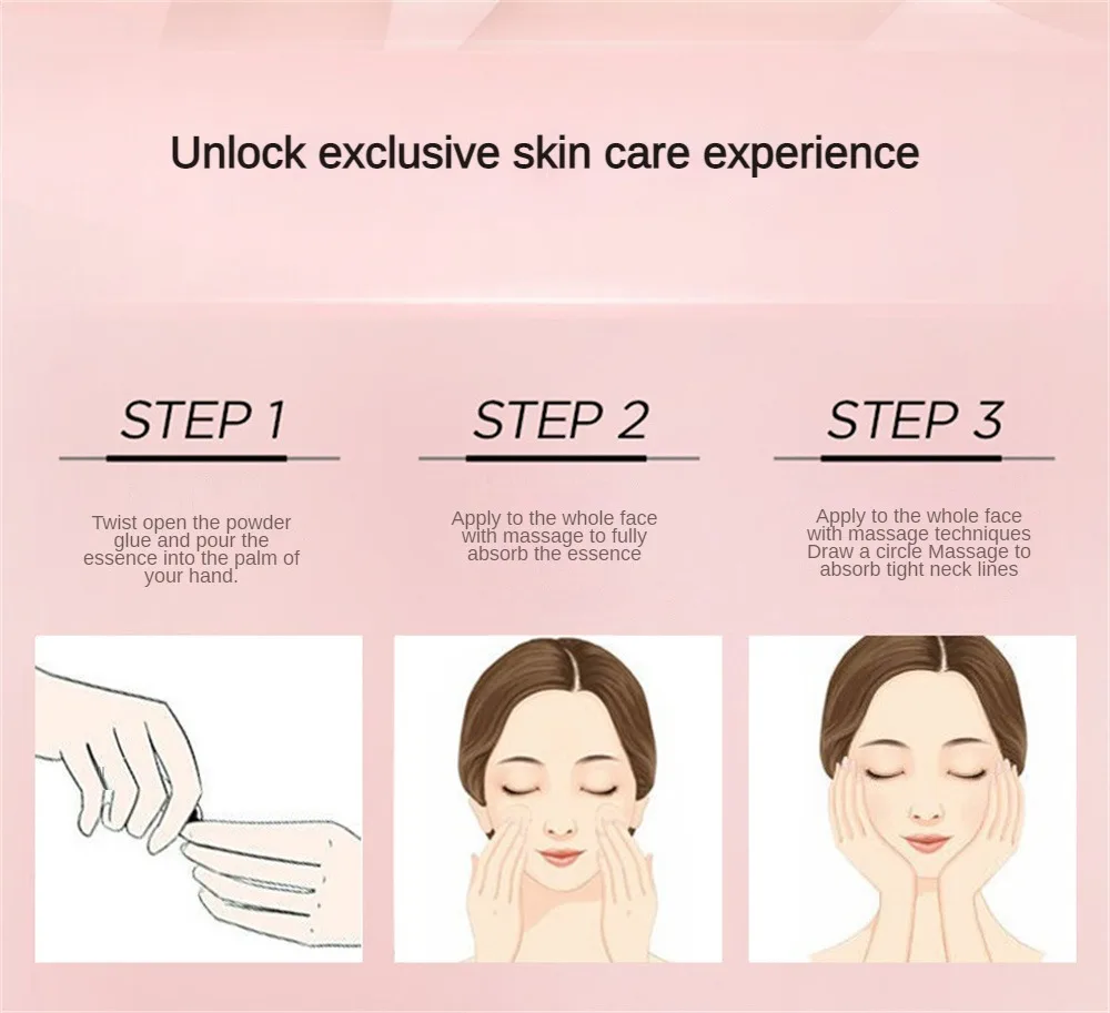 Cut off the mouth of the capsule and apply it on the face, neck and body every morning and evening before going to sleep. Massage gently for 2-3 minutes, suitable for all skins.