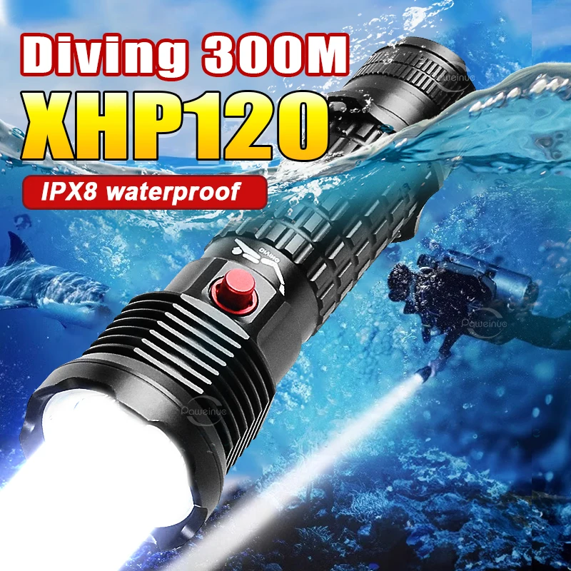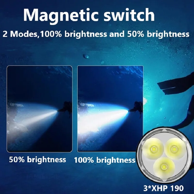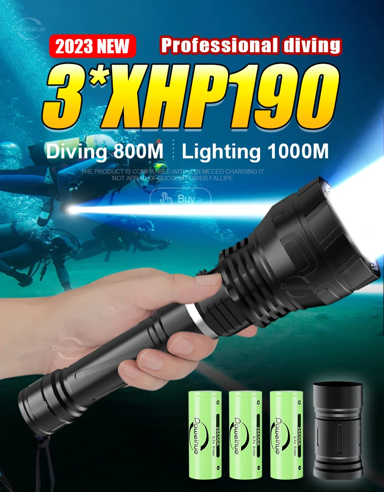 2023 New 3*XHP190 Diving Flashlight  Super Bright Underwater Lighting Lantren Powerful Professional Diving Flashlight 800m Light
