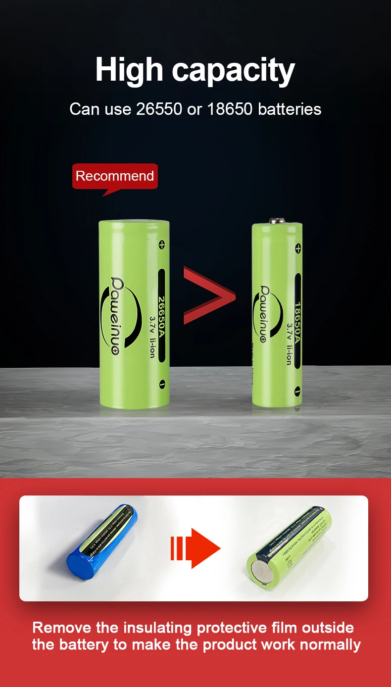Battery: 1*18650 battery or 1*26650 battery