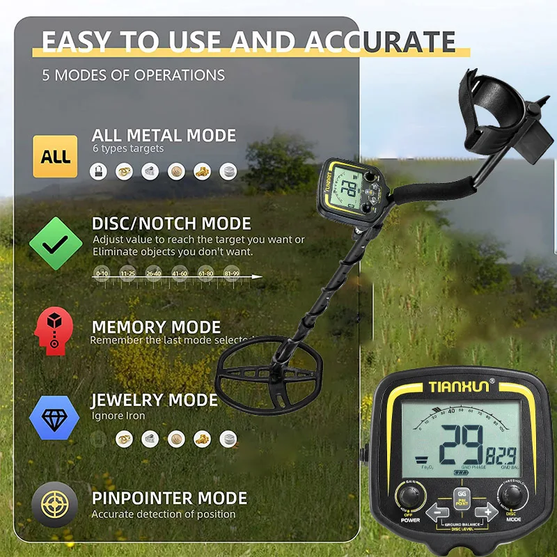 1. TX-850 metal detector has high sensitivity and strong detection ability. With this metal detector, you can search for coins, artifacts, jewelry, gold and silver anywhere.