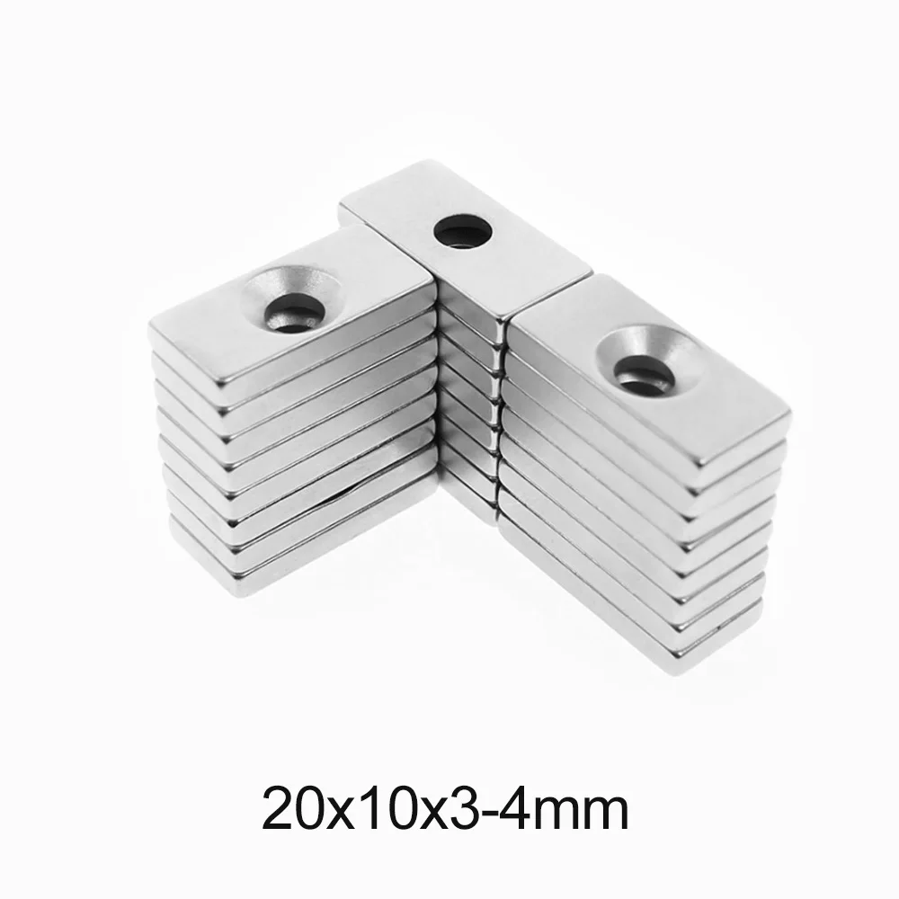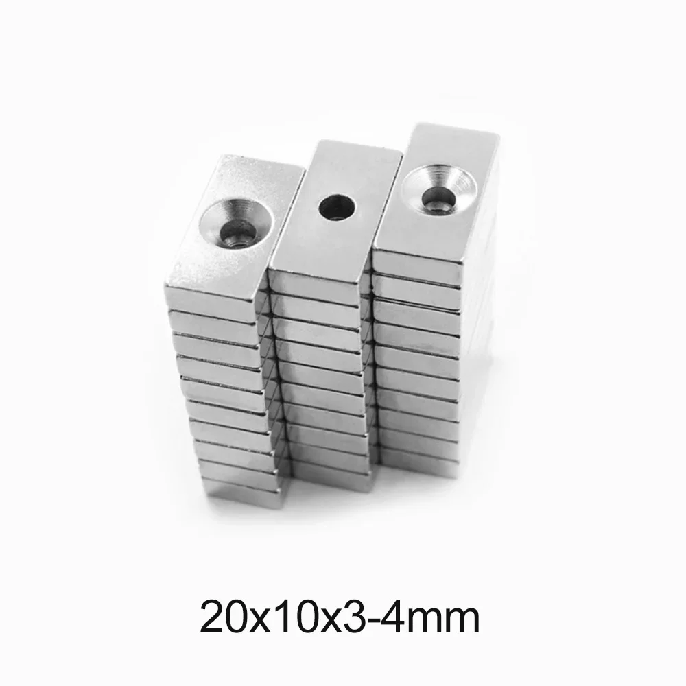 5/10/20/50/100PCS 20x10x3-4mm Block Countersunk Search Magnet Hole 4mm 20x10x3-4 Sheet Strong Permanent NdFeB Magnets 20*10*3-4