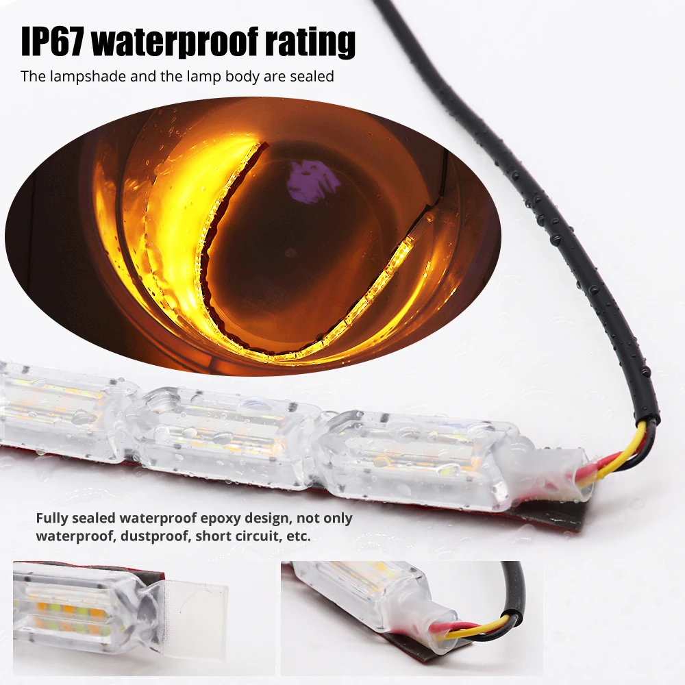 2pcs DRL Flexible LED Strip Daytime Running Lights Turn Signal Flowing White Yellow Car Auto Front Headlamp Driving Lights 9-16V