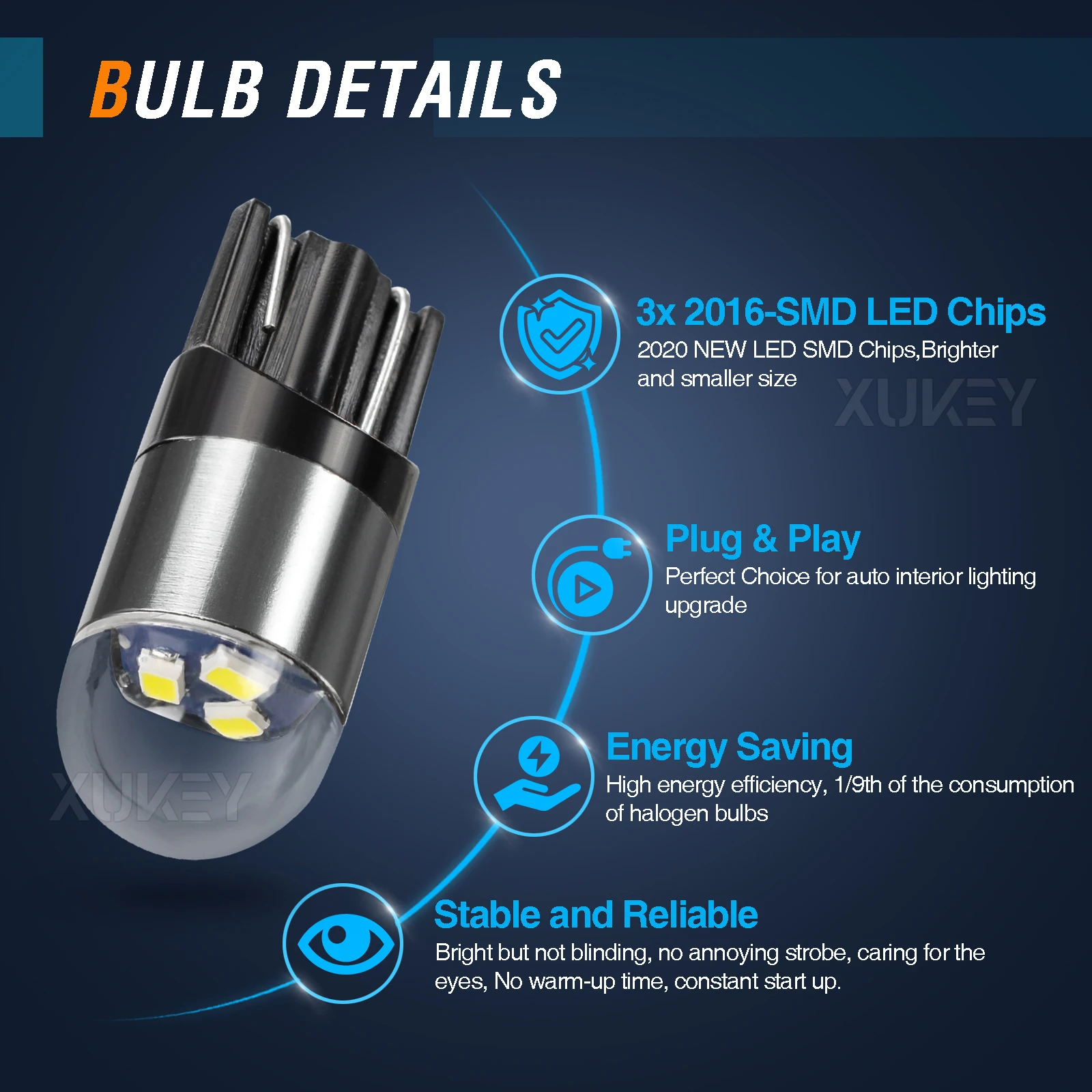 Tips: The ebay compatibility list may be incorrect, this bulb is only compatible with T10 wedge bulbs. If you are not sure before buying, you can take a photo of the original bulb and contact us to avoid wasting your time and money on a wrong purchase.