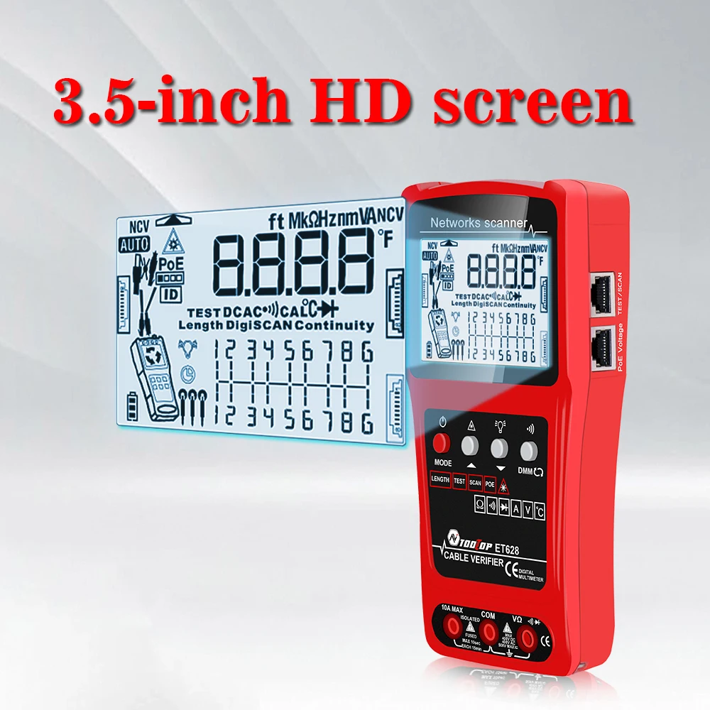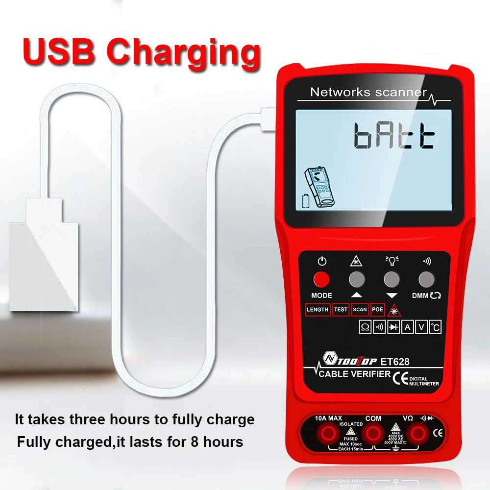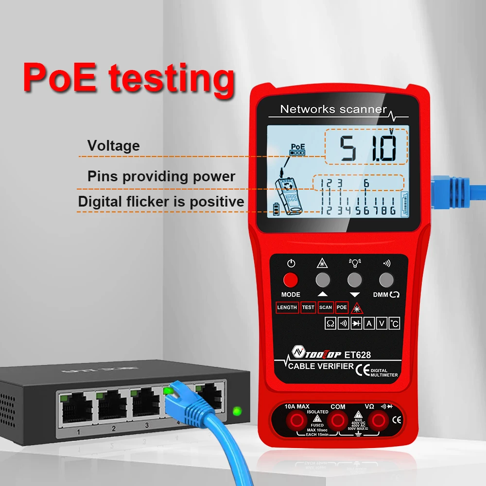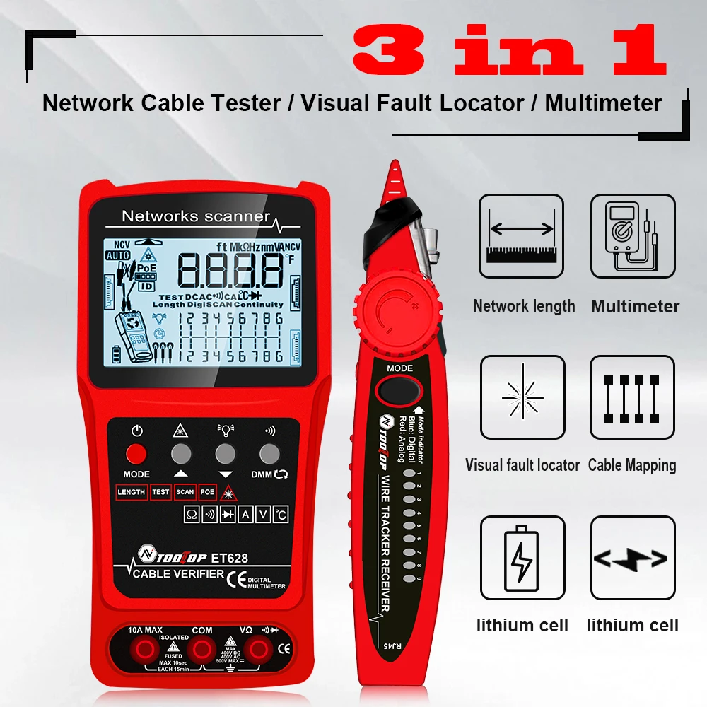 ET628: Network Cable Tester, Visual Fault Locator, Multimeter, Silent Vibrate Mode