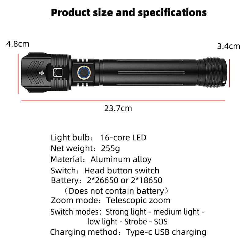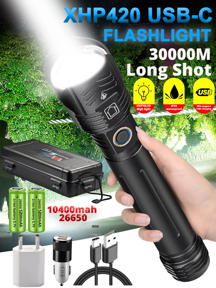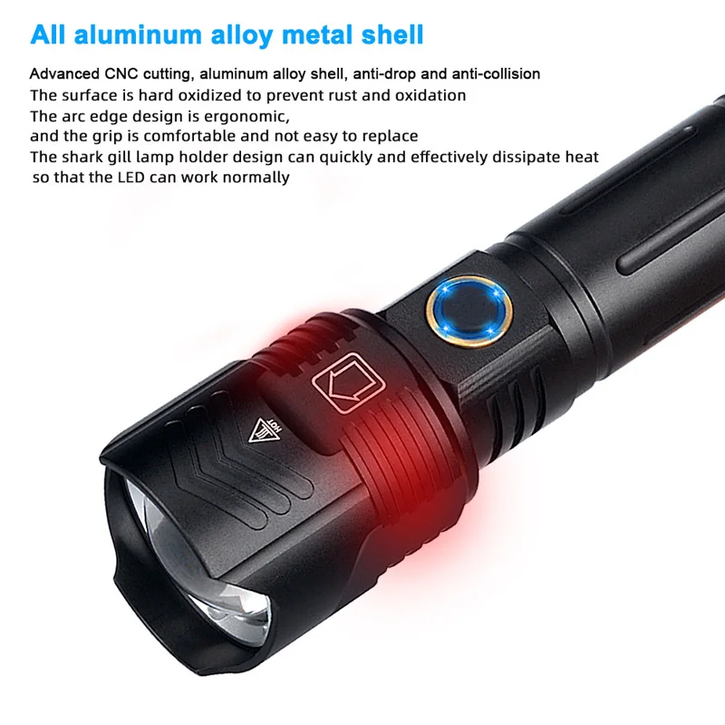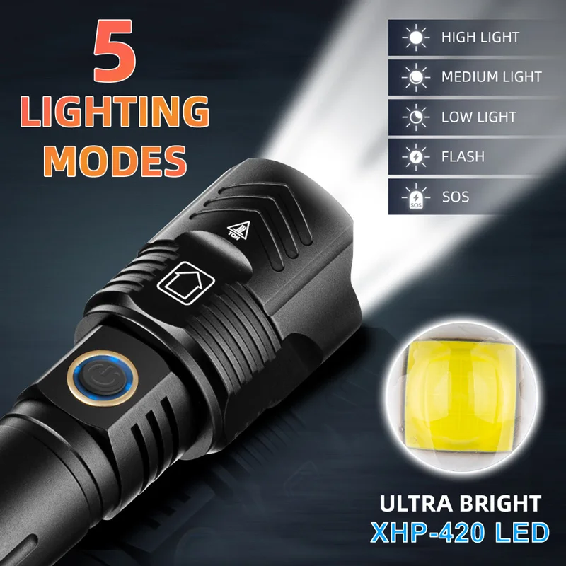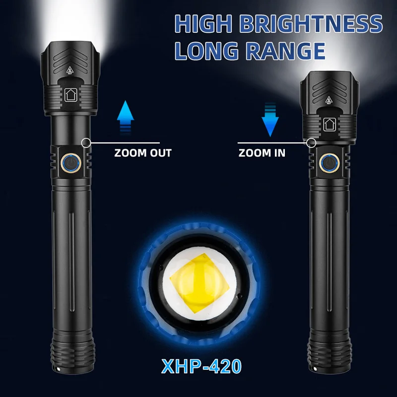 NEWEST XHP420 Strong Light 9990000000LM LED Flashlight 16 Core LED Outdoor Emergency Telescopic Focusing Aluminum Alloy Tactical Flashlights