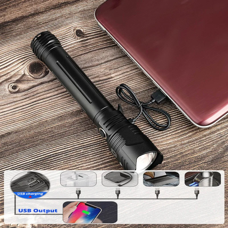 High lumen bulb with ultra bright long range, Type-c USB charging, supporting output;