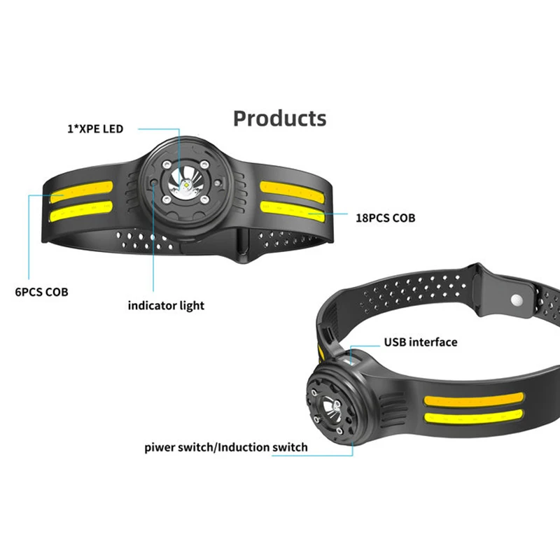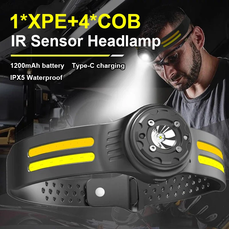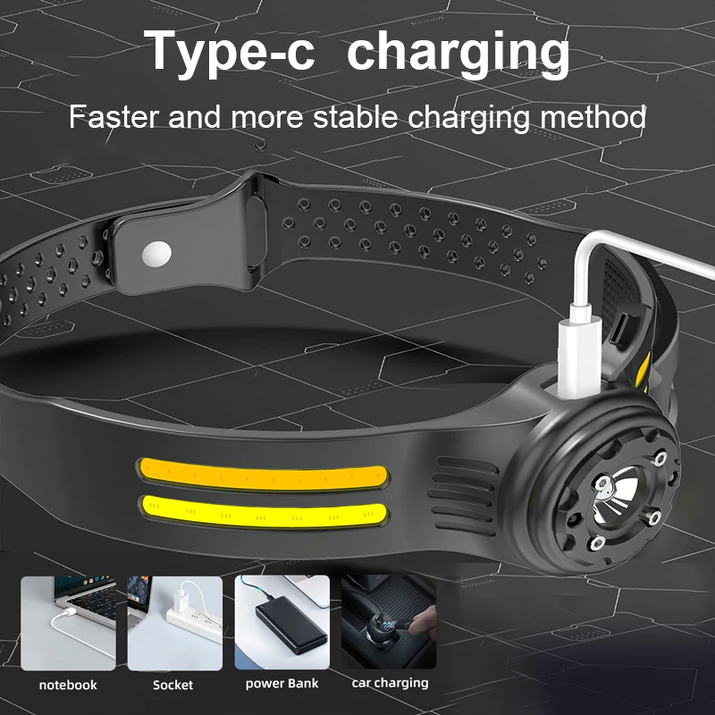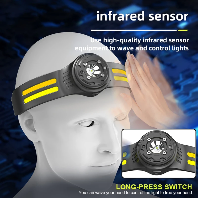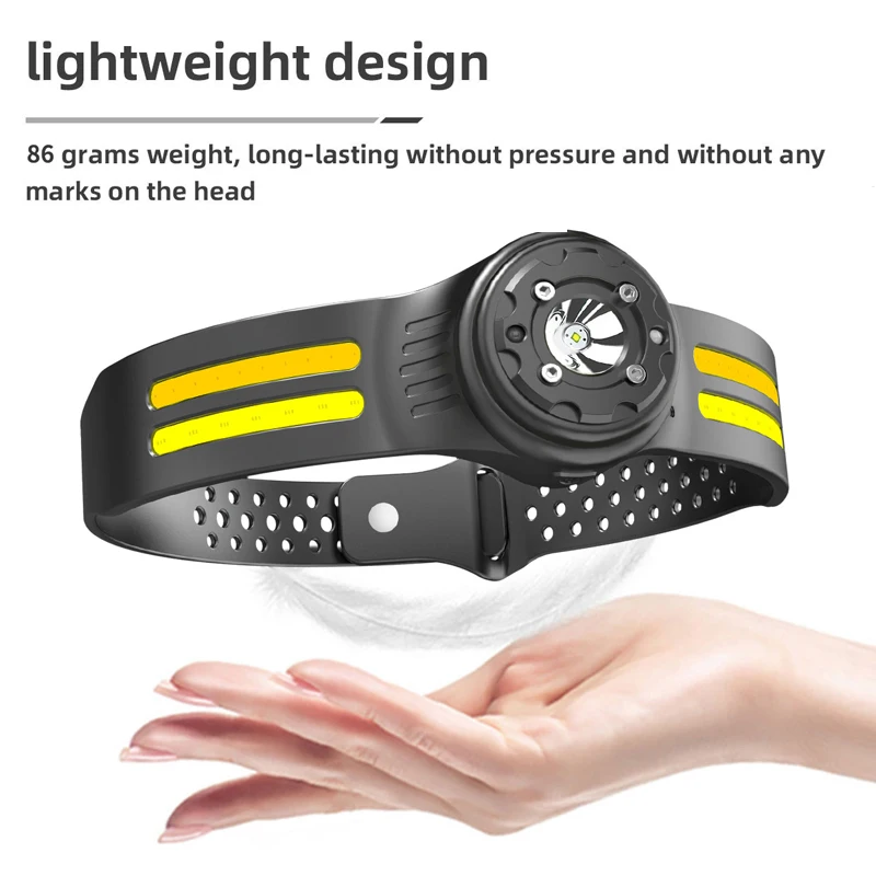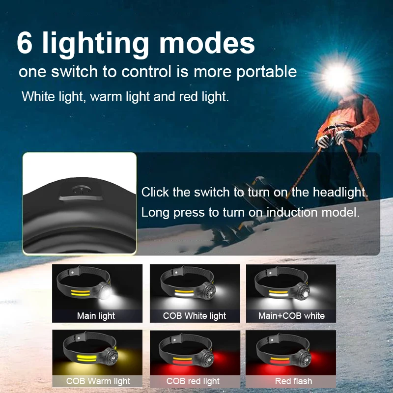 【Motion Sensor Mode】The LED headlamp camping accessory is equipped with the latest smart sensor. Even with gloves on, as long as the distance to the device is within 10cm, you can quickly switch ON/OFF by waving your hand in sports mode.