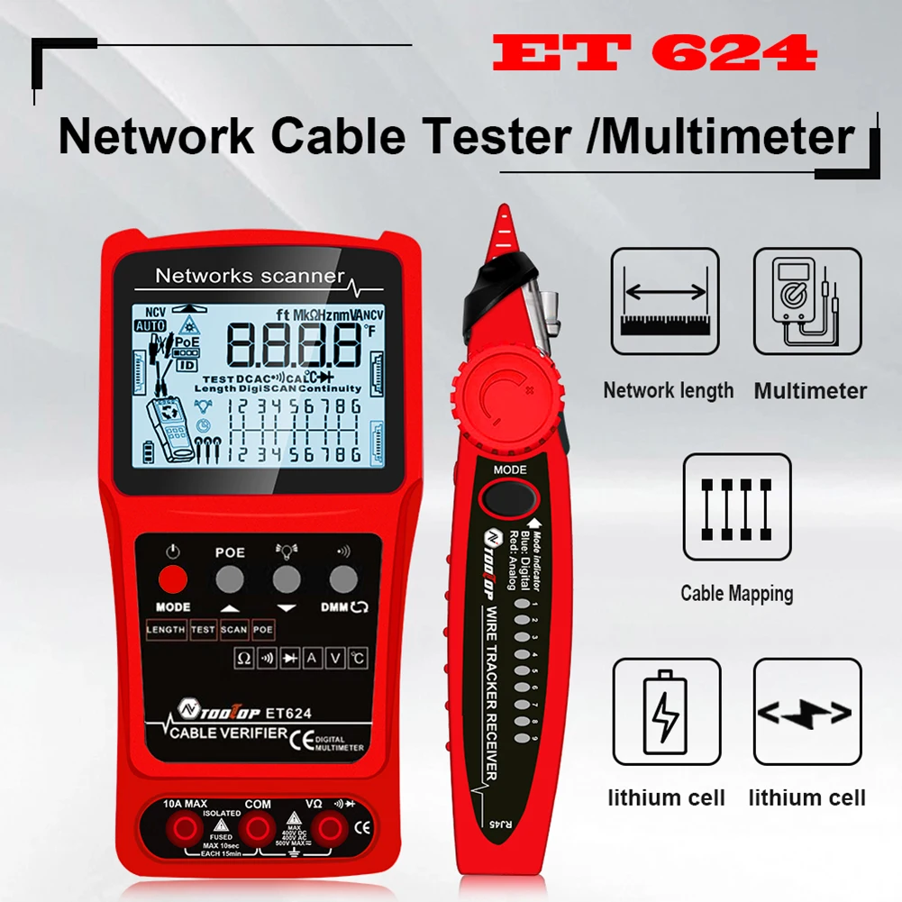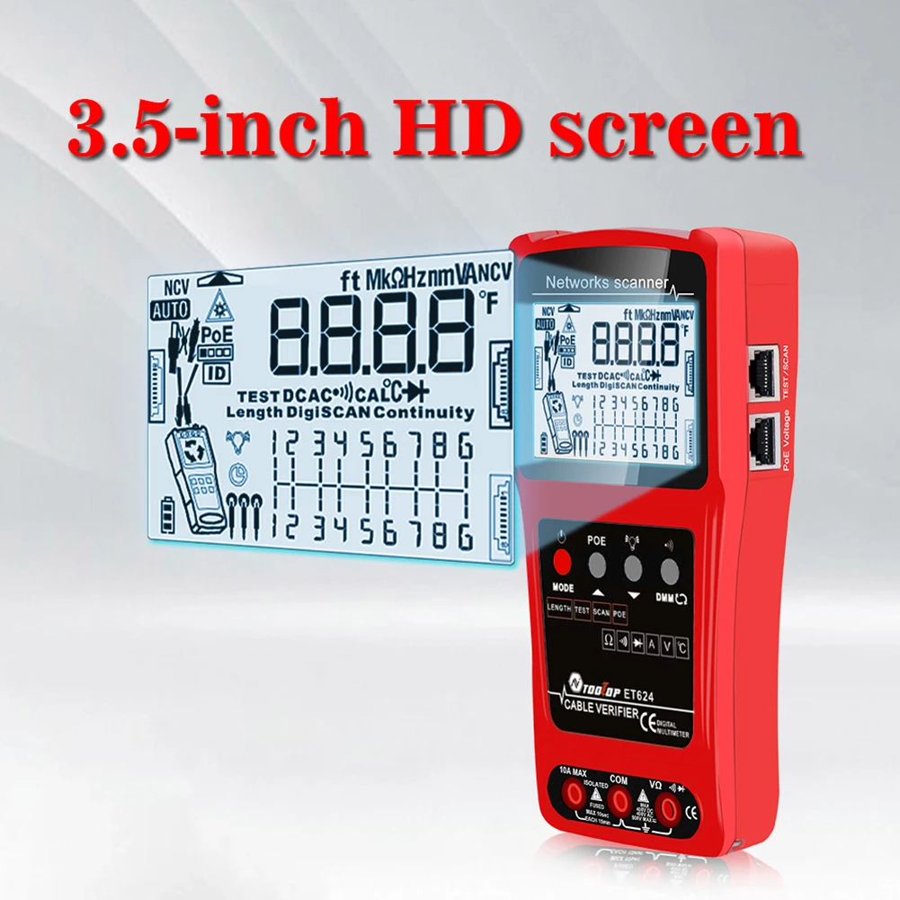3in1 Multimeter Network Cable Tester Analogs Digital Search Visual Fault Locator POE Test Network Cable Tracker 3.5inch LCD Display Screen With Flash Light Multifunctional for Cable Length Pairing Check
