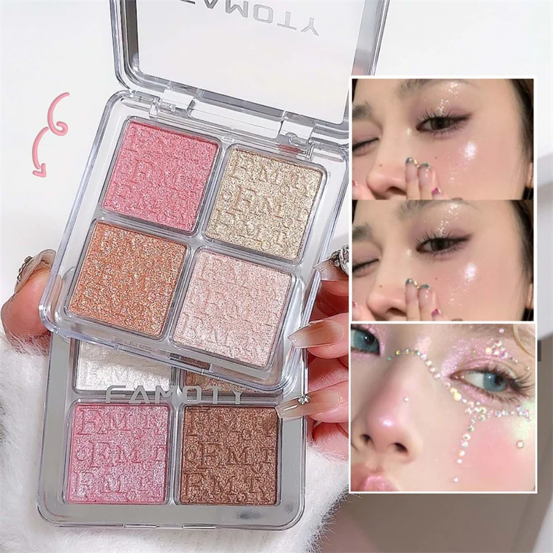 4 Colors Diamond Highlighter Powder Palette Glitter Face Contour Brighten Makeup Shimmer Three-dimensional High Light Cosmetic