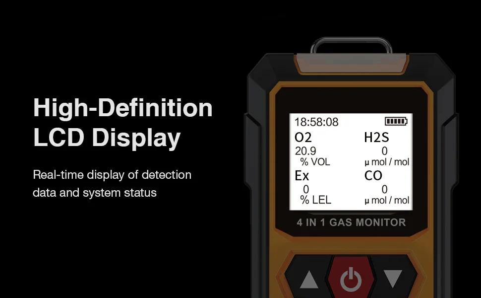 - Boasting high-resolution accuracy: 1 PPM for H2S and EX, 1% LEL for O2, and 0.1% VOL for CO, it ensures comprehensive monitoring for potential gas leaks.