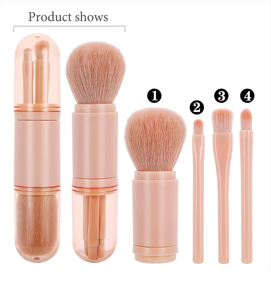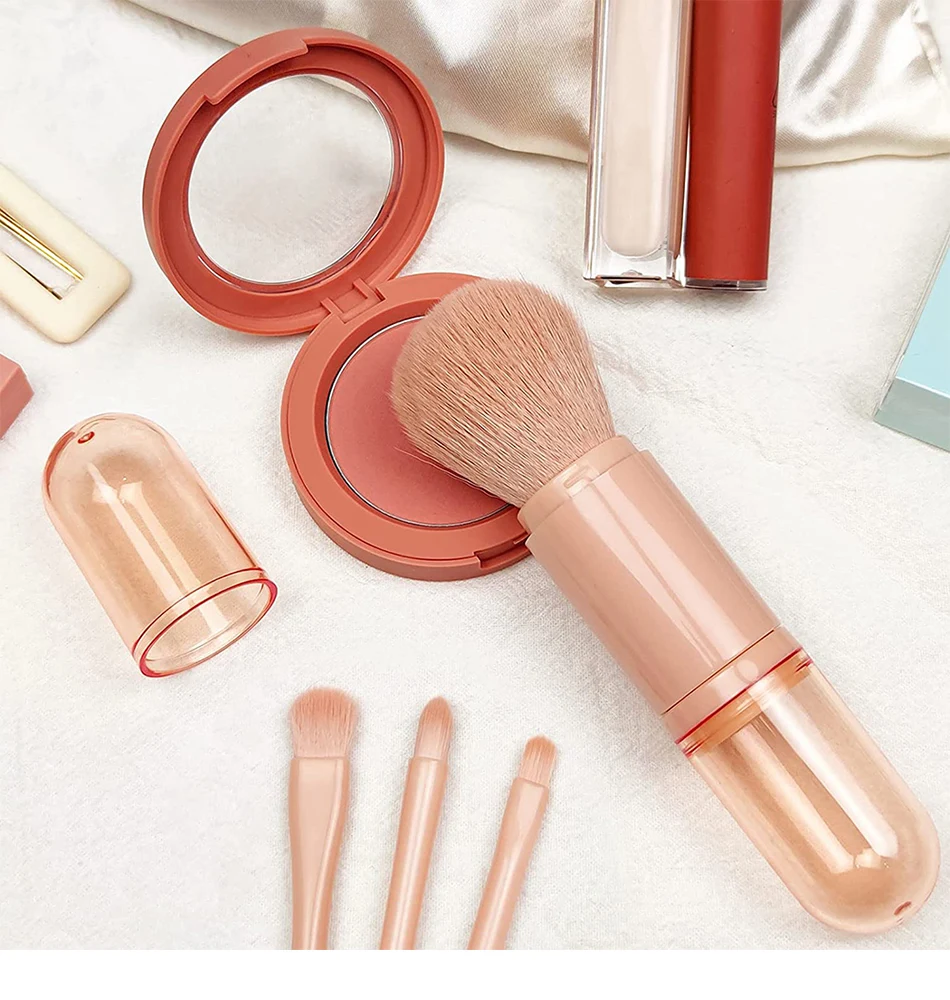 4 in 1 Makeup Brush Set Mini Eyeshadow Foundation Powder Brush Portable Travel Retractable Make Up Brush Cosmetics Beauty Tools