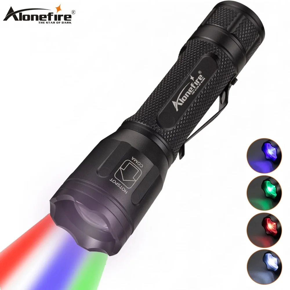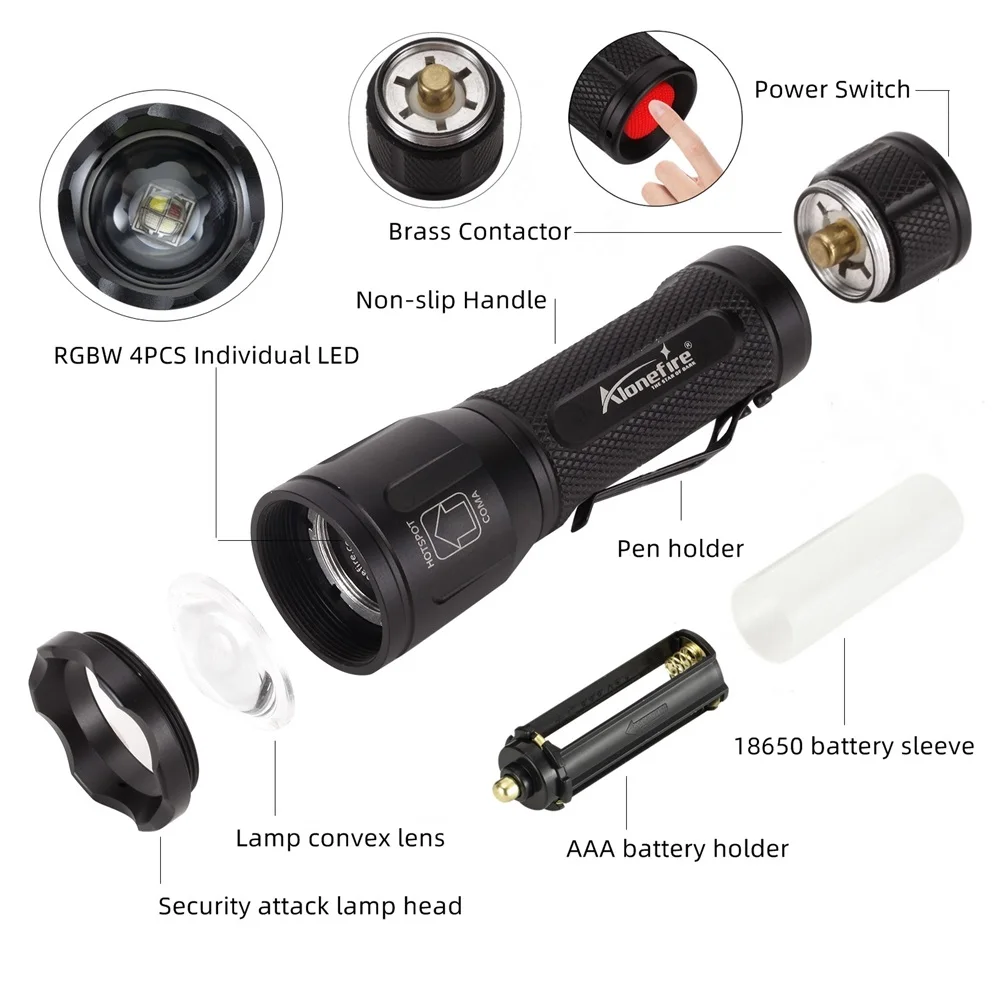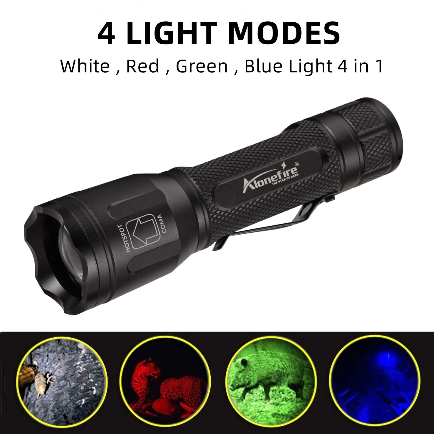 4-In-1 Multicolor LED Flashlight Red Blue Green White Lamp Portable Outdoor Hunting Photography Selfie Hiking High Light Torch