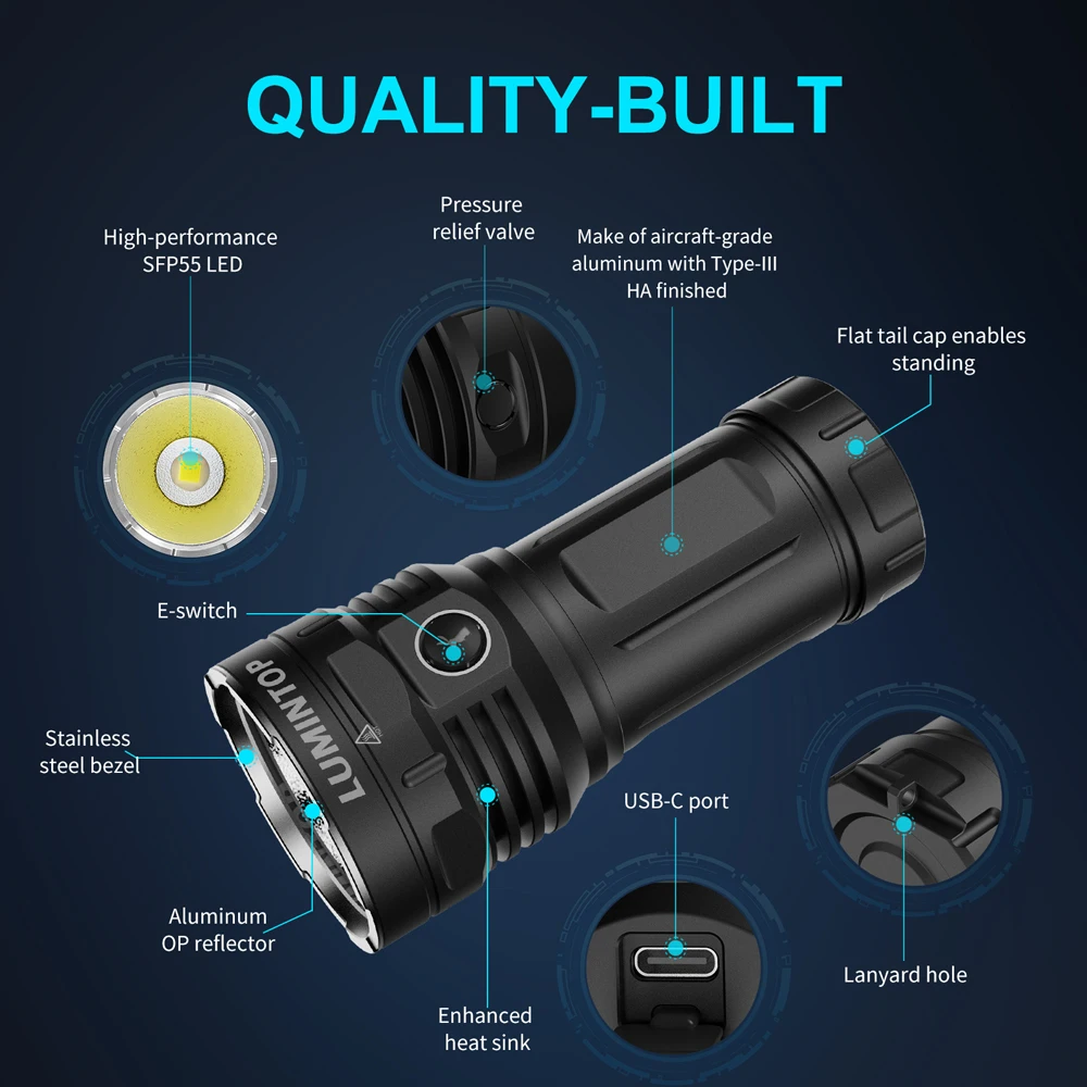 4.Over-heat protection,when the temperature of the flashlight is high,the flashlight will automatically reduce the output to prevent overheating and ensure the comfort of use.