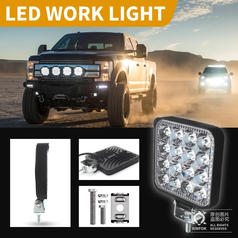48W Work Light 30 Degree LED Car Spot light Beam Square Off-road Lamp Fog Lighting Exterior For Jeep Boat SUV Truck
