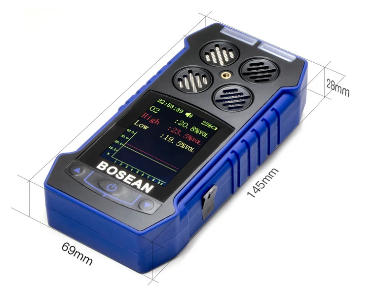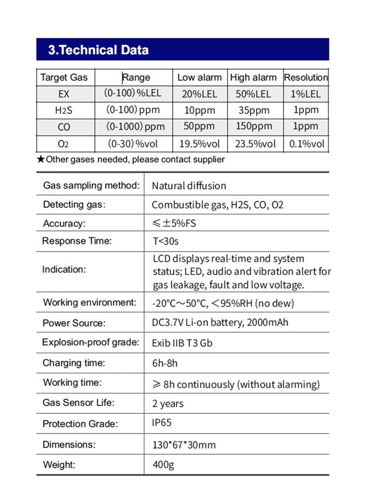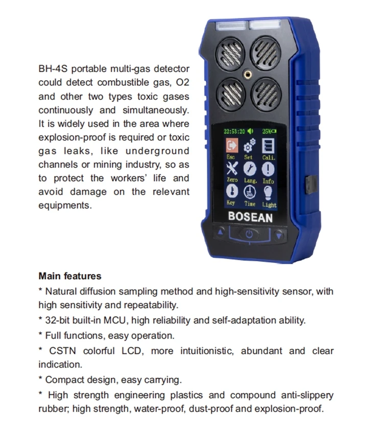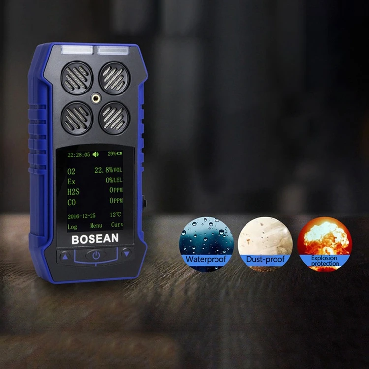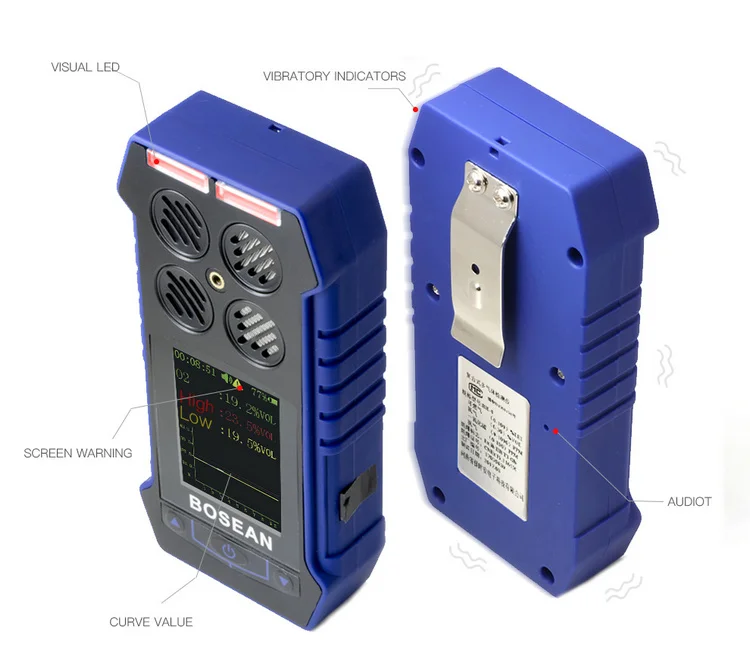 The product support four kinds of  gas detection: flammable gas (EX), oxygen (O2), hydrogen sulfide (H2S), carbon monoxide (CO)