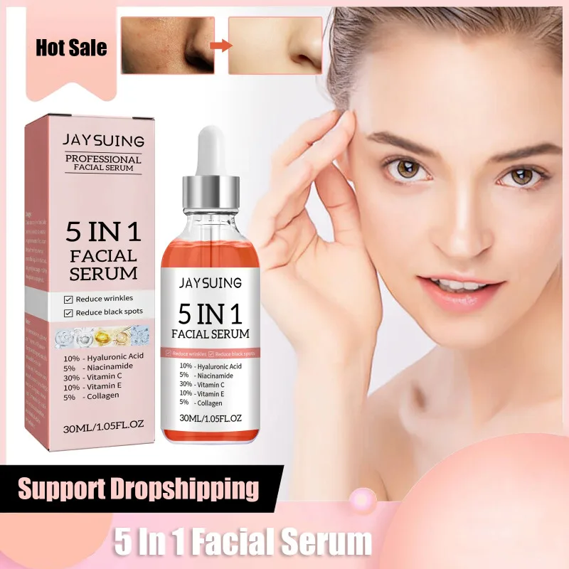 Jaysuing 5 In 1 Face Serum Moisturizing Whitening Anti Wrinkle Aging Vitamin C Hyaluronic Acid Facial Serum Shrink Pores Skin Care 30ml