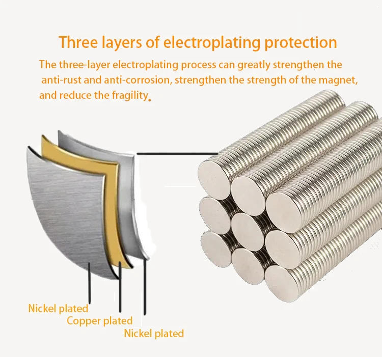 ▲The best coating-Ni+Cu+Ni three-layer coating. The best coating available, providing shiny and rust-resistant coating The steel cup provides protection for the magnet and helps prevent chipping or cracking.