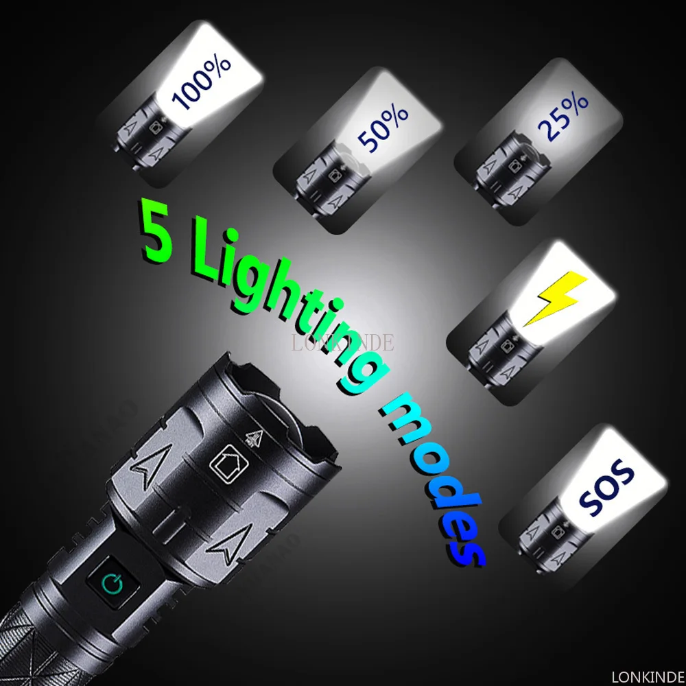 The illumination brightness of this white flashlight reaches 5000000, please do not direct it to the eyes to avoid blindness.