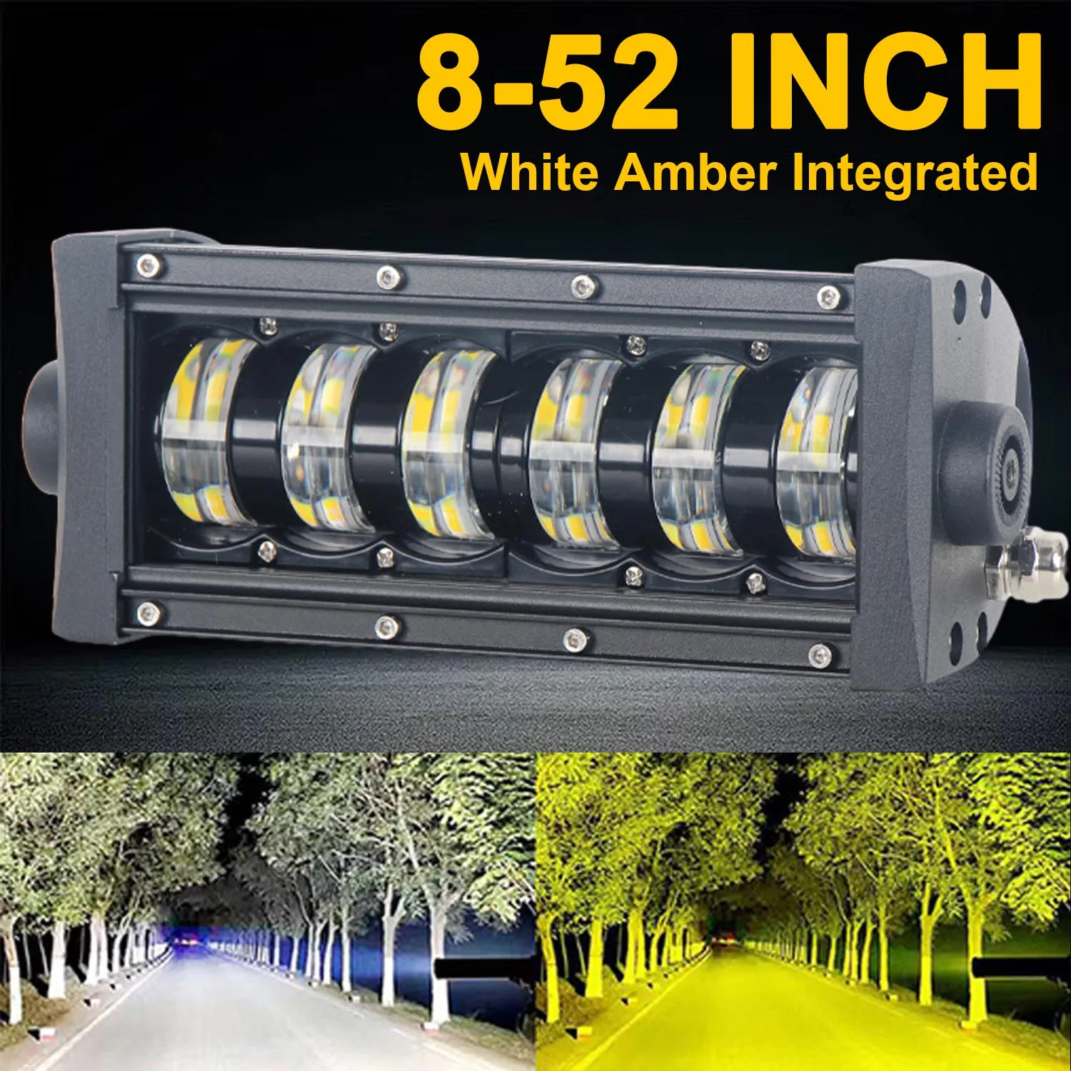 8-52 inch LED Light Bar Amber White High Low Beam Heavy Duty Waterproof Driving Offroad Lights