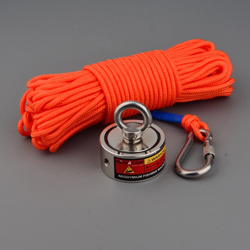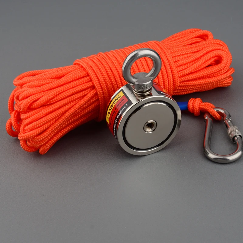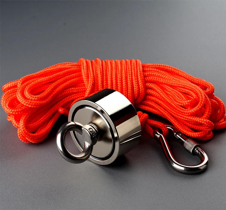 80-140KG*2 Outdoor Double Sided Super Salvage Magnet Set Neodymium N52 Strong Searching Magnetic Fishing Magnets with Rope