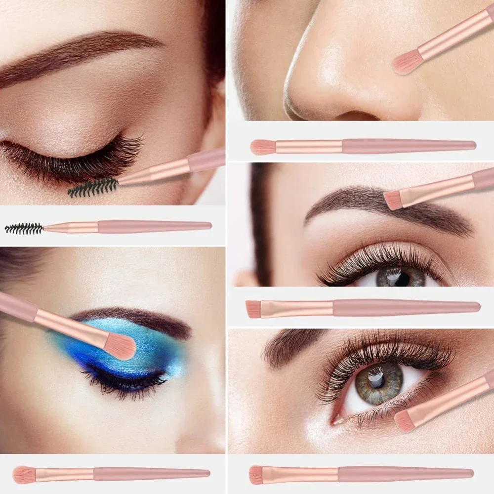 6 colors, 8 different shape brush heads. Suitable for loose powder, blush, foundation, eyeshadow, eyebrows, lips, excess powder and other eyes, face makeup!