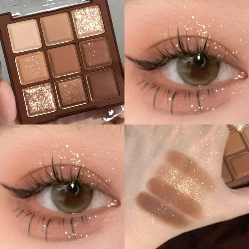 9 Colors Chocolate Eye Shadow Palette Pearly Matte Earth Color Eyeshadow Pallete Shiny Sequins Eye Pigments Lasting Makeup