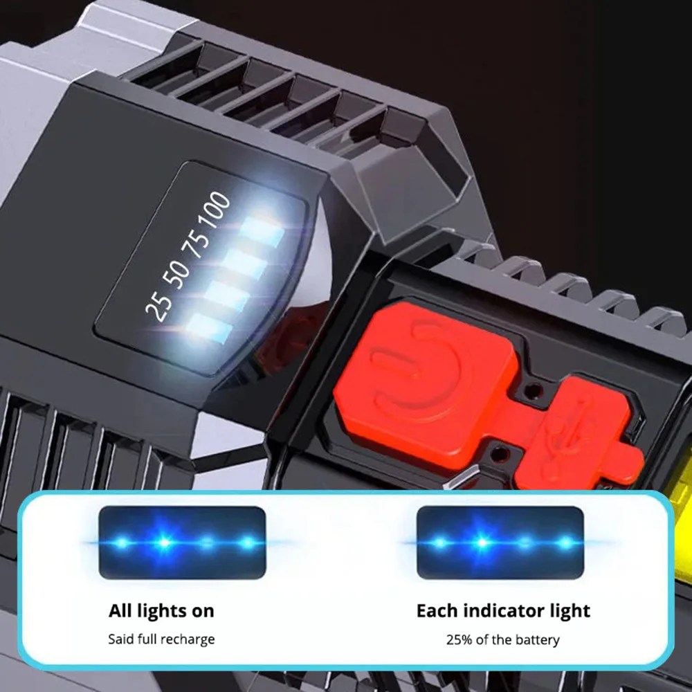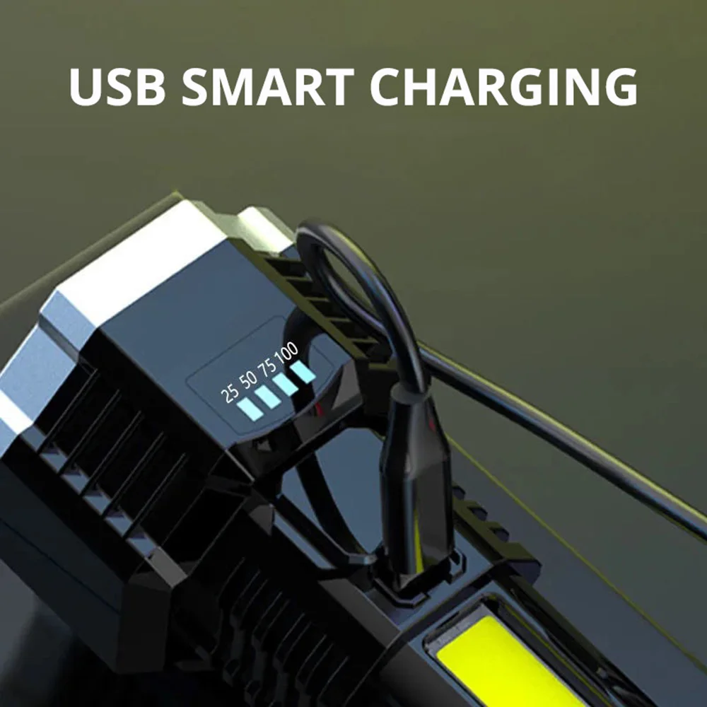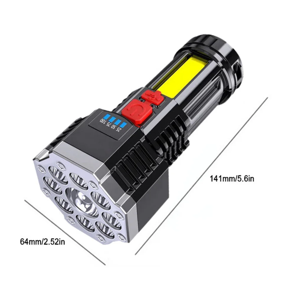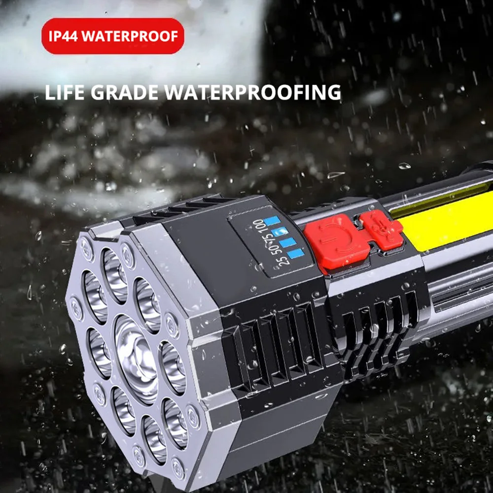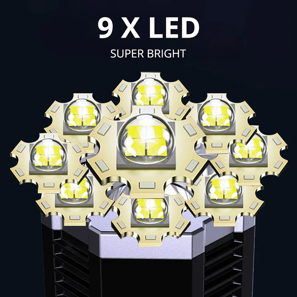 9 LED Super Bright Flashlight Rechargeable Outdoor Multi-function Waterproof Led Long-range Spotlight Battery Display COB Light