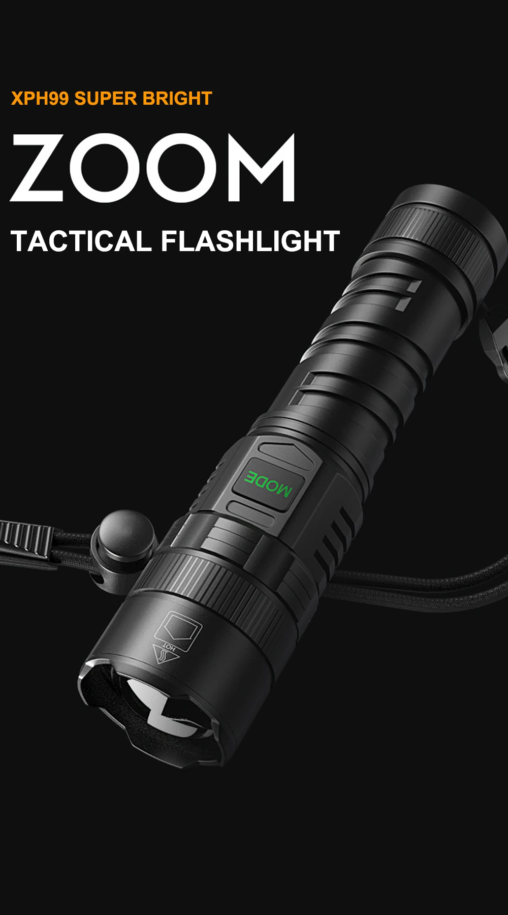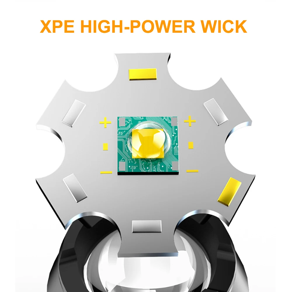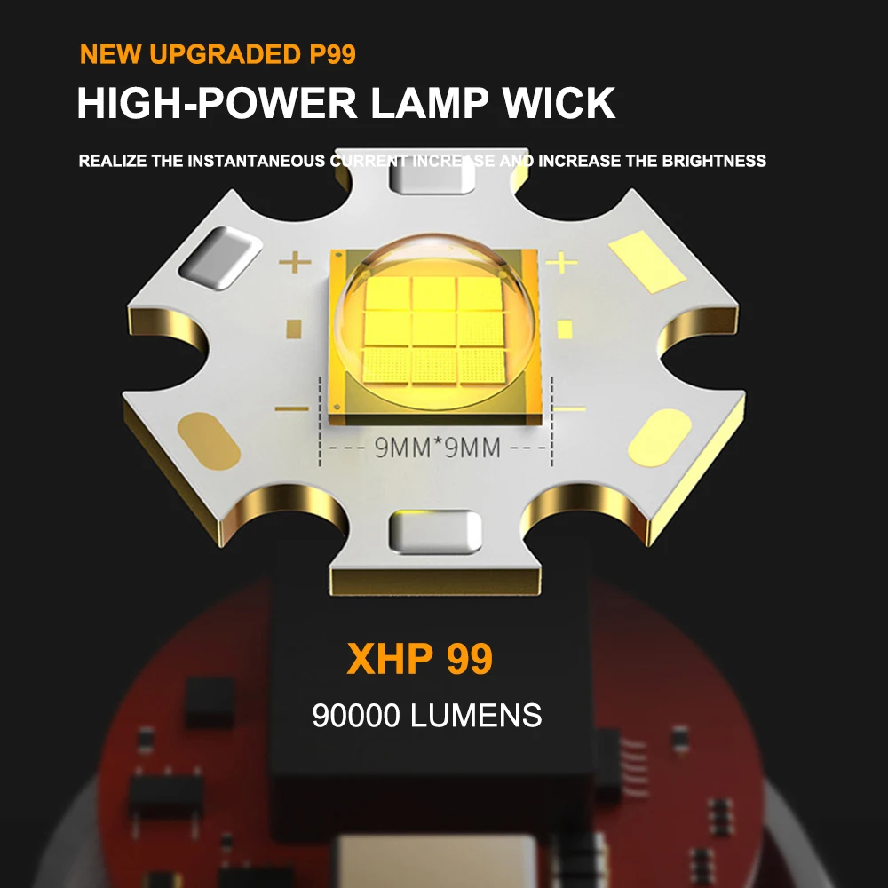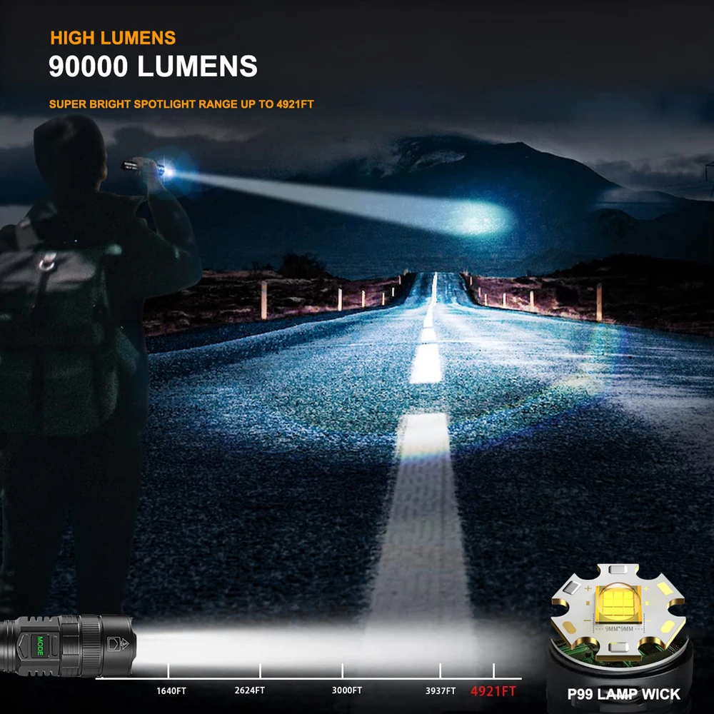 1.XHP99 LED CLIP – This tactical flashlight built-in XHP99 LED chip, could generates an ultra-high output up to 90000 lumens.Easily light up an entire room or focus in on objects 4921 feet.