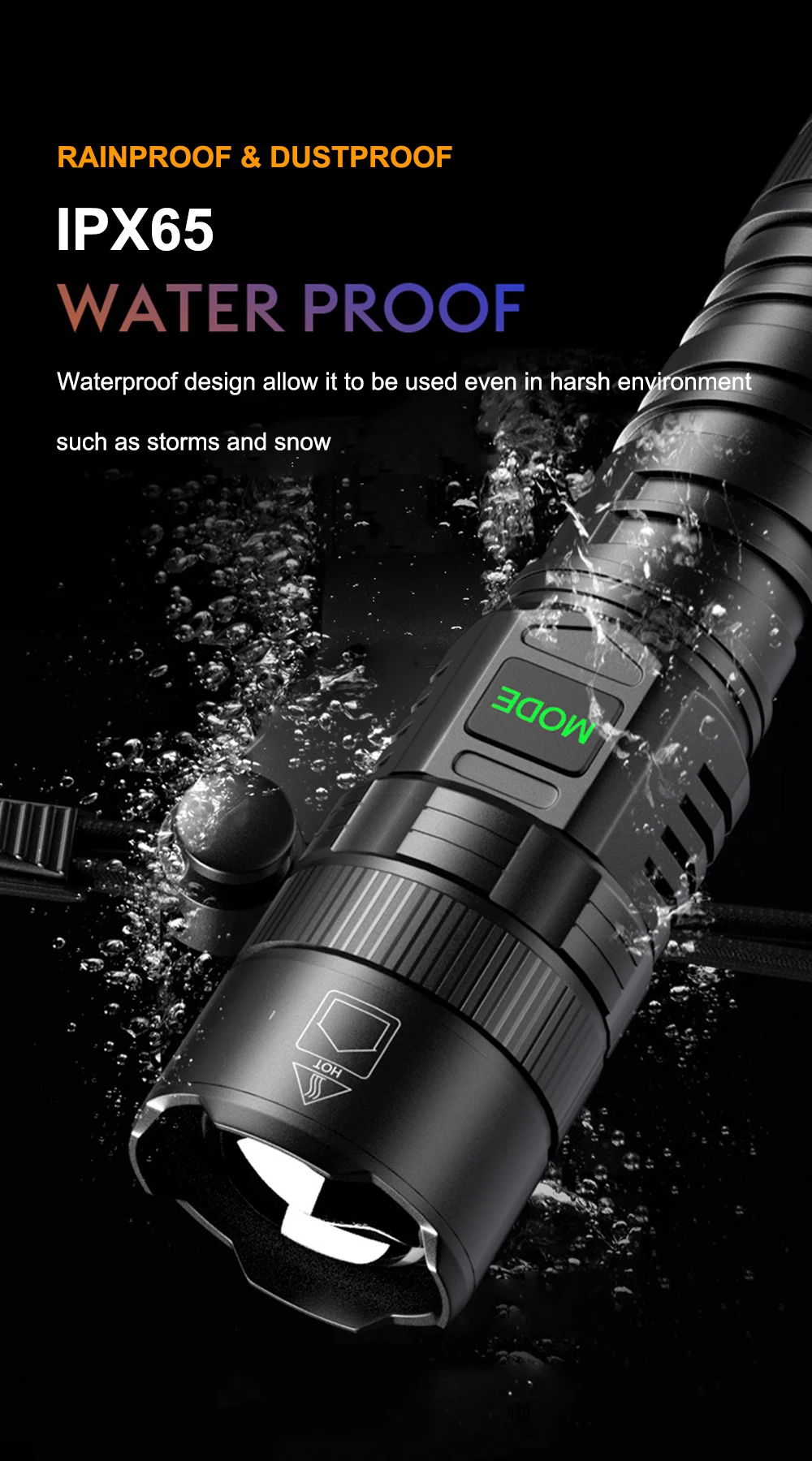 Waterproof rating: IPX65 waterproof