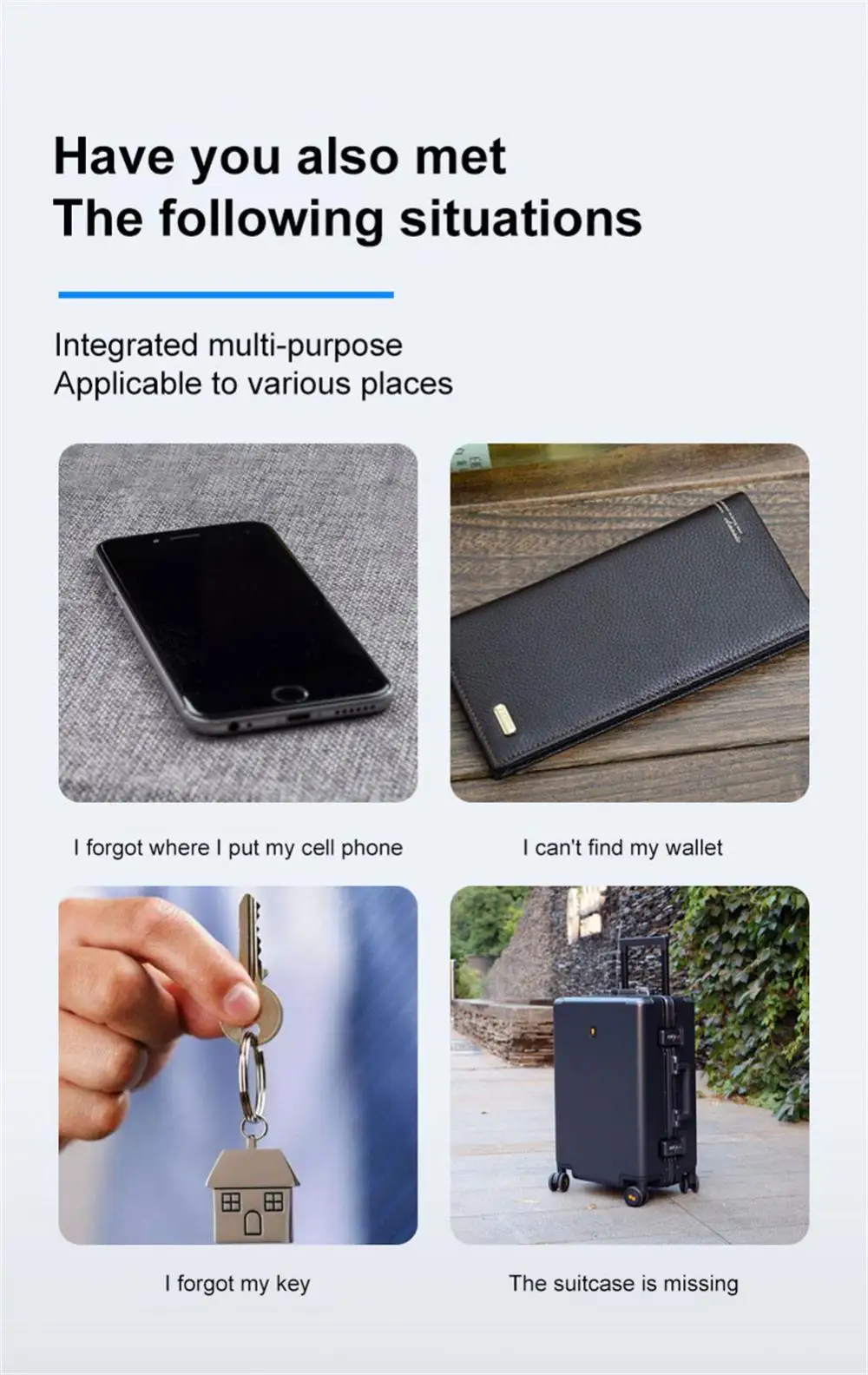 【Compatibility and size:】 App.Size: 1.5inX1.5inX0.29in. It supports for iOS and Android phone.Suitable for Wallet, Car, Kids, Pets, Bags, Suitcase or other belongings.