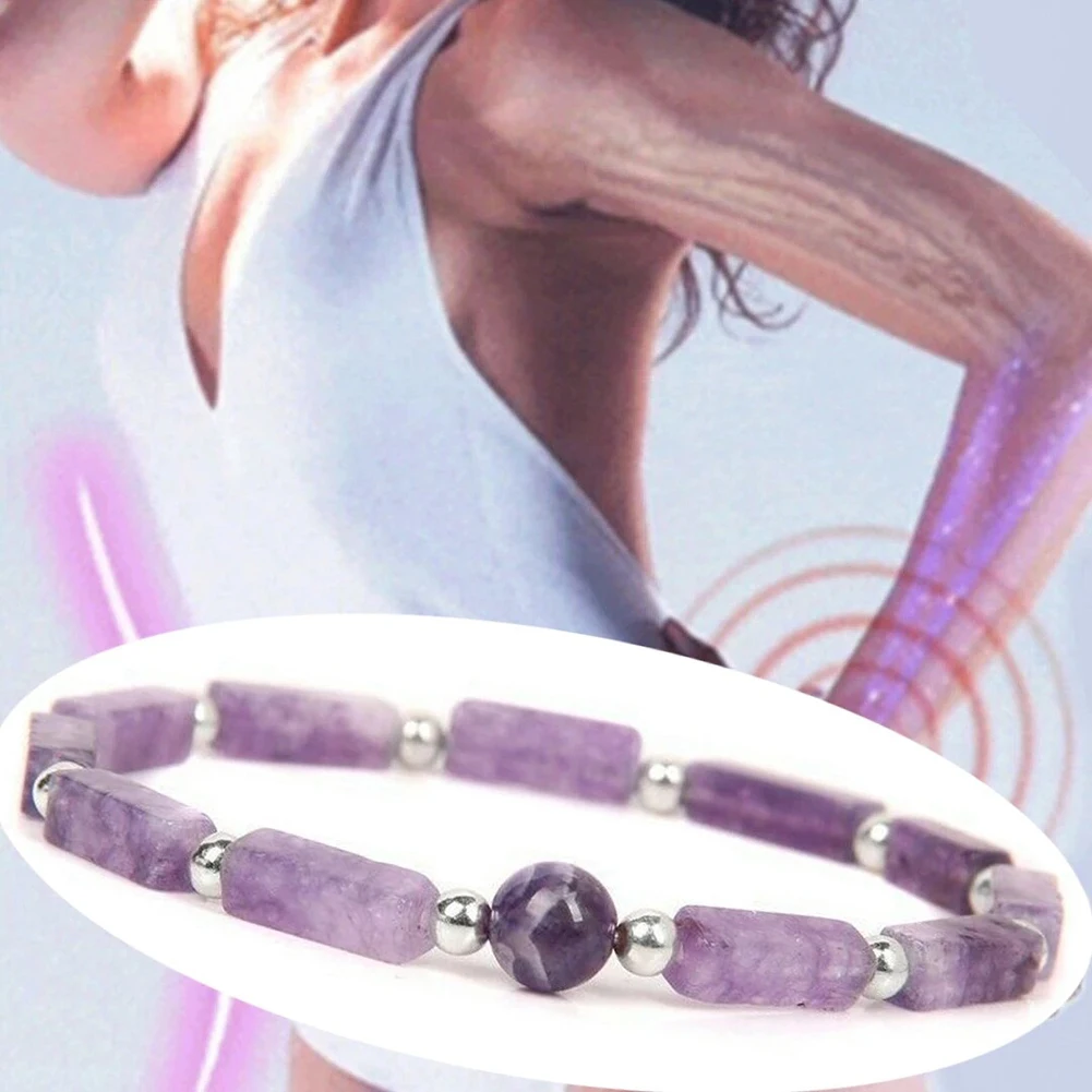 Natural Amethyst Healthy Bracelet Stress Relief Wristband Bangle Fatigue Relief Body-purify Slimming Weight Loss Fatigue Relief Healing Yoga Wristband Bangles for Women Christmas Valentines Gift