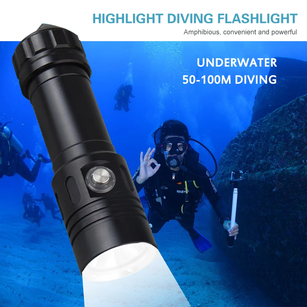 Asafee Af05D Led Flashlight Torch Underwater 50M Diving Lamp 4 File Waterproof L2 Dive Light Power By 26650 Battery