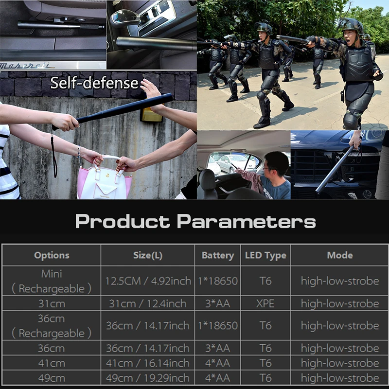 Baseball Bat LED Flashlight 3800 Lumens Super Bright Baton aluminium alloy Torch for Emergency and Self Defense z44
