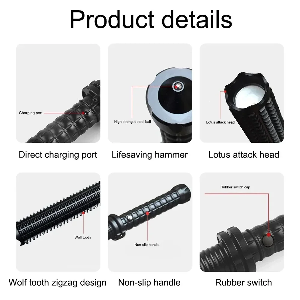 Baseball bat tactical flashlight self-defense LED flashlight focusable mace baton light aluminum alloy emergency riot equipment