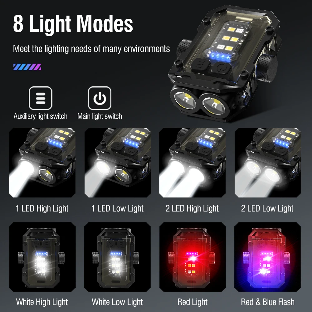 ✿✿8Lighting Modes-The small keychain flashlight has 4 modes for the main light (2 leds high light – 2 leds low light – 1 led high light – 1 led low light), 4 modes of side light (white high light – white low light – red light – – red blue light flash), long press to turn on and turn off,which can meet your different requirements. Our tiny flashlight is bright enought and can meet the needs of daily use even in low-light mode.