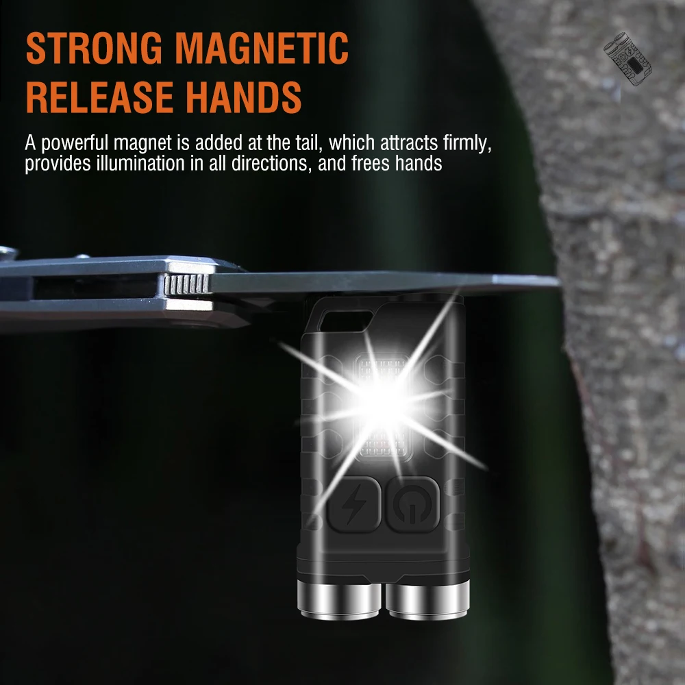▪▪ Mini Portable: With 2 strong LED beads, the main light generates up to 900 lumens of lighting and has a range of 100 meters. Weighing only 33 grams and measuring 56 x 31 x 15 mm, it easily fits in your pocket or backpack and can be used as a keychain.